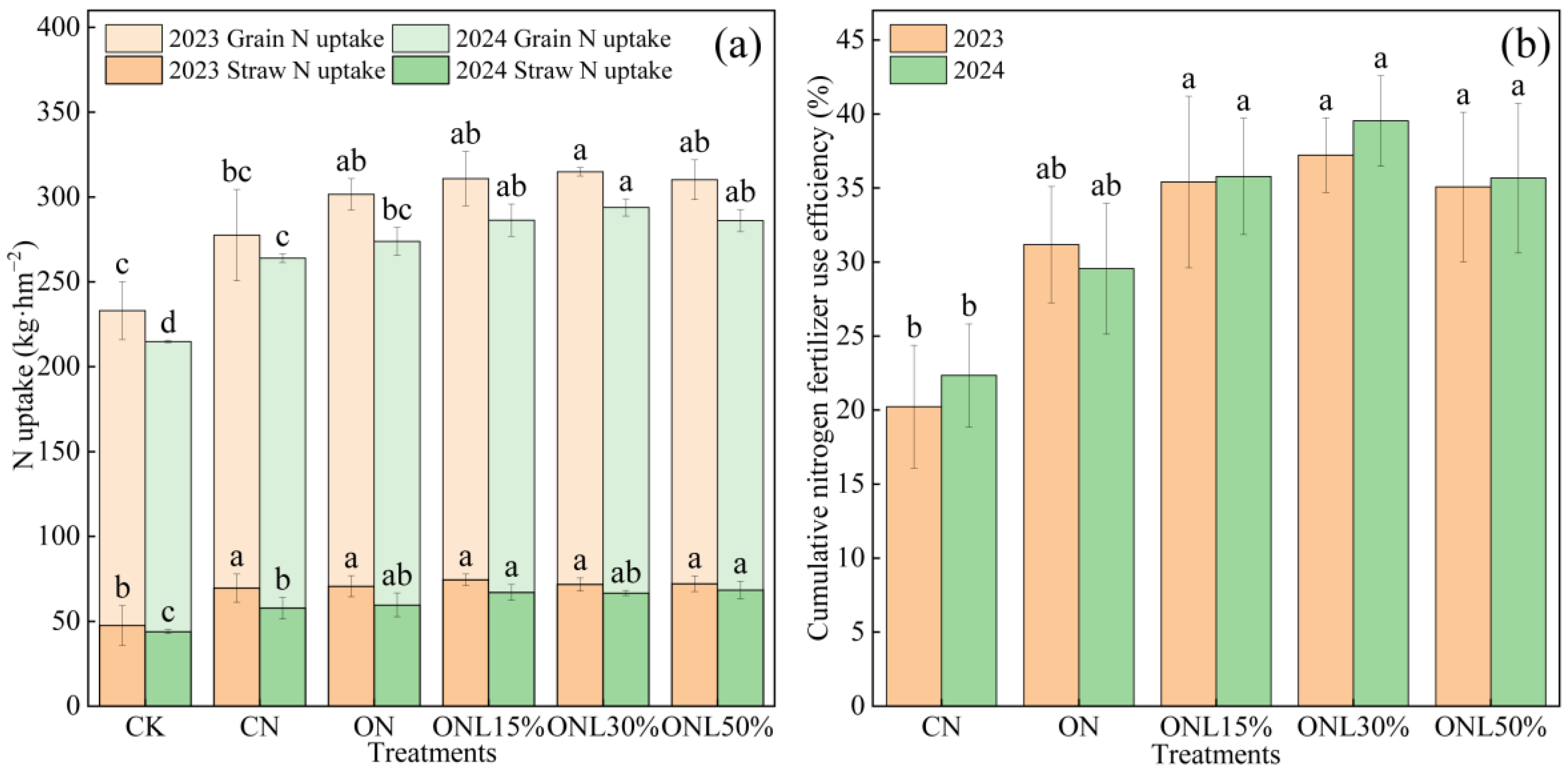 Chicago/Turabian StyleWu, Sheng, Tingfeng Gao, Chenxue Wu, Haoqiang Yuan, Ying Liu, Jiating Liu, Lei Han, Cheng Zhang, Youhua Ma, and Xia Liao. 2026. "Consecutive Application of Biogas Slurry Improved the Cumulative Nitrogen Use Efficiency by Regulating the Soil Carbon Pool" Plants 15, no. 1: 102. https://doi.org/10.3390/plants15010102