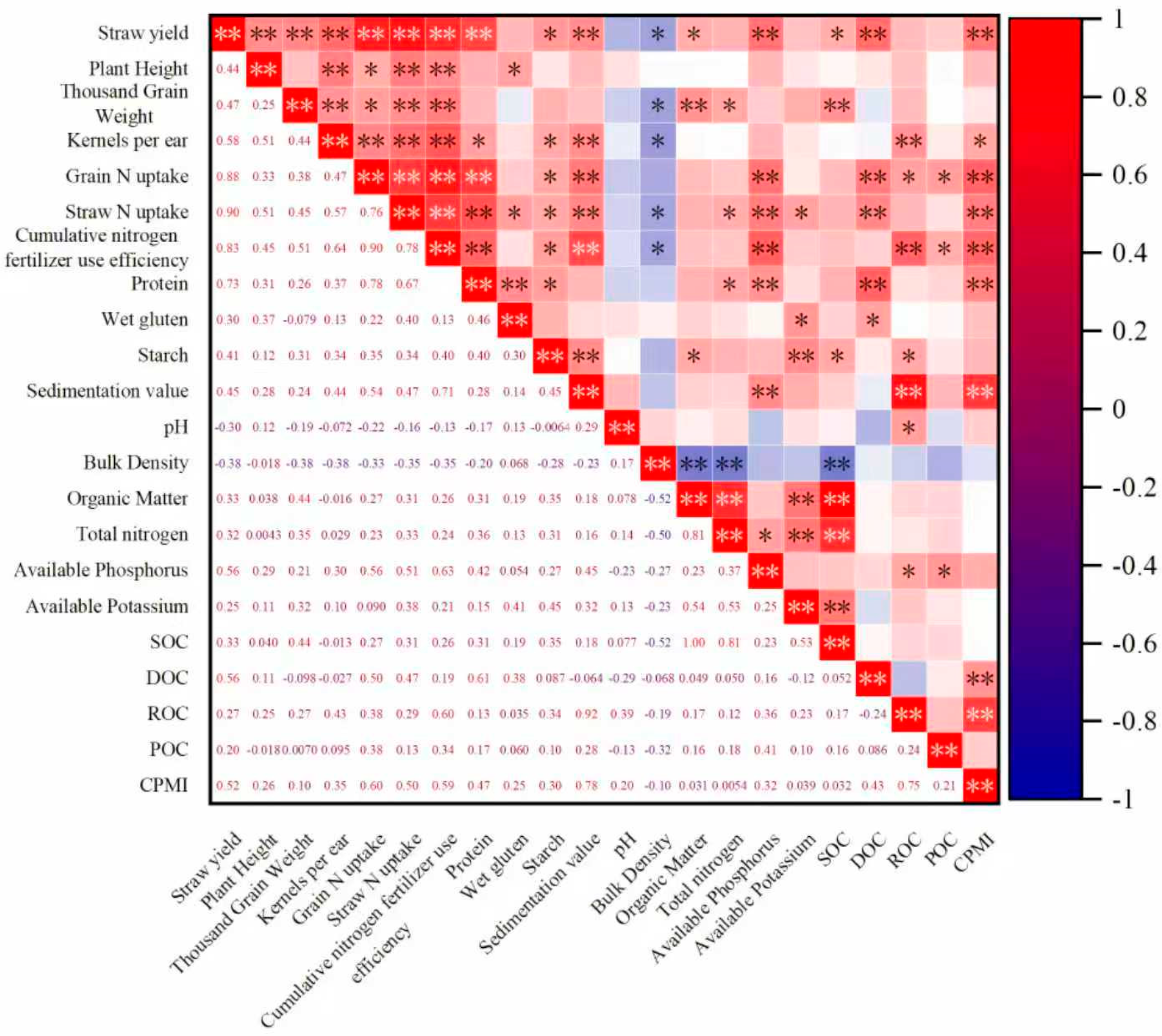 2.6. Correlation of Soil CPMI with Yield, Quality, and Cumulative Nitrogen Use Efficiency in Wheat and Soil Fertility