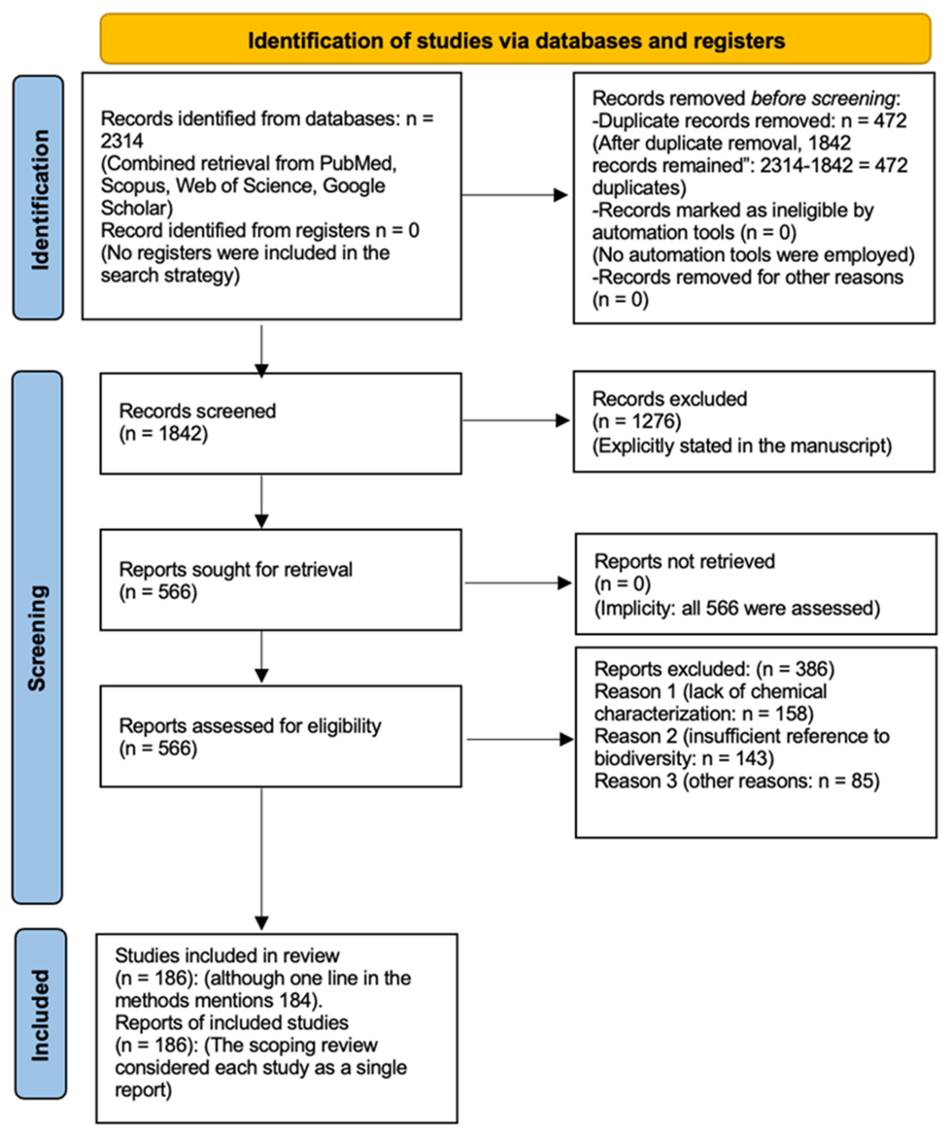 - Pereira, R.C.; Ramos, Y.J.; Moreira, D.L. The eco-evolutionary raison d’être of natural products as support for sustainable bioprospecting. Front. Ecol. Evol. 2025, 13, 1658630. [Google Scholar] [CrossRef]