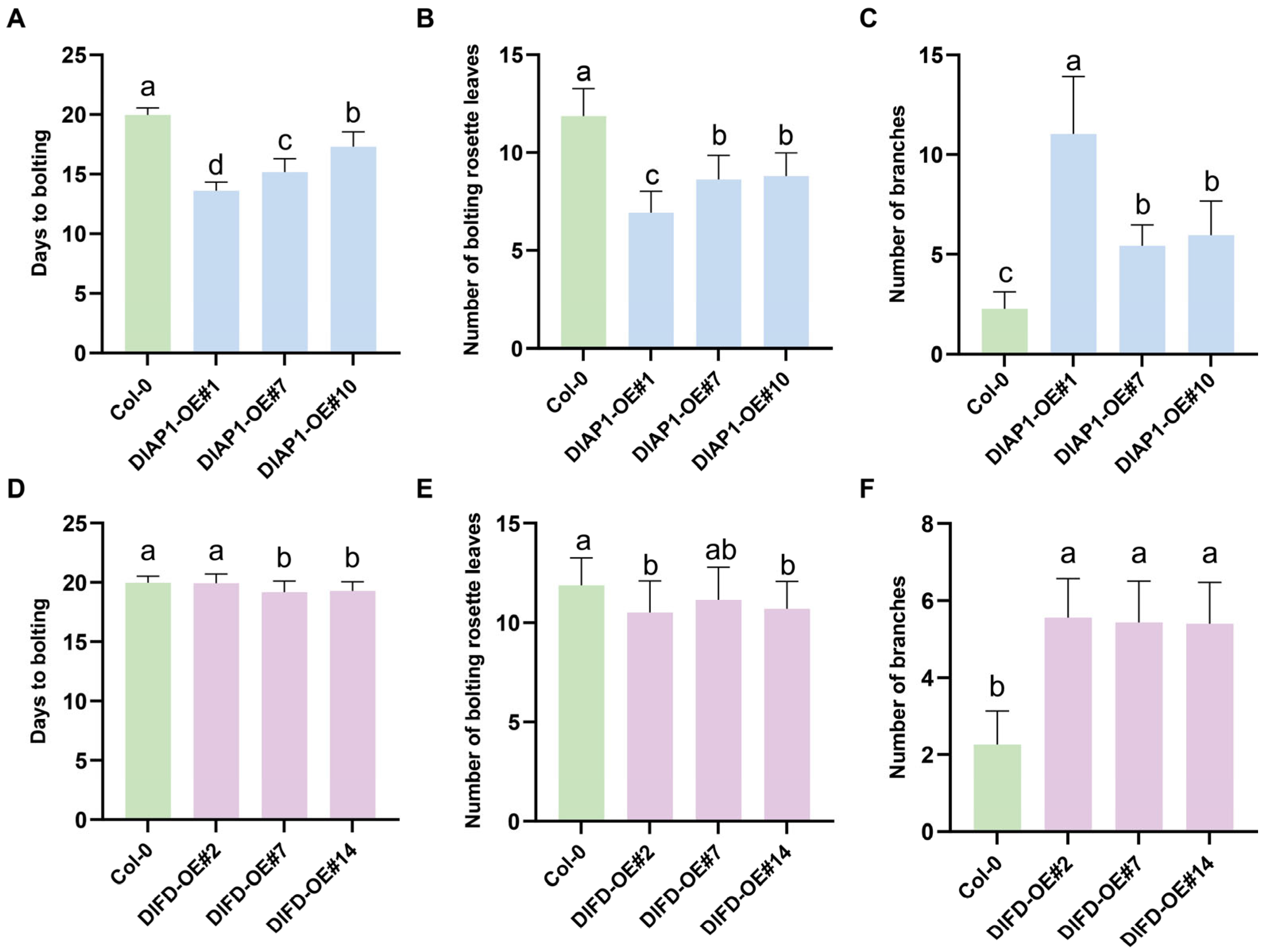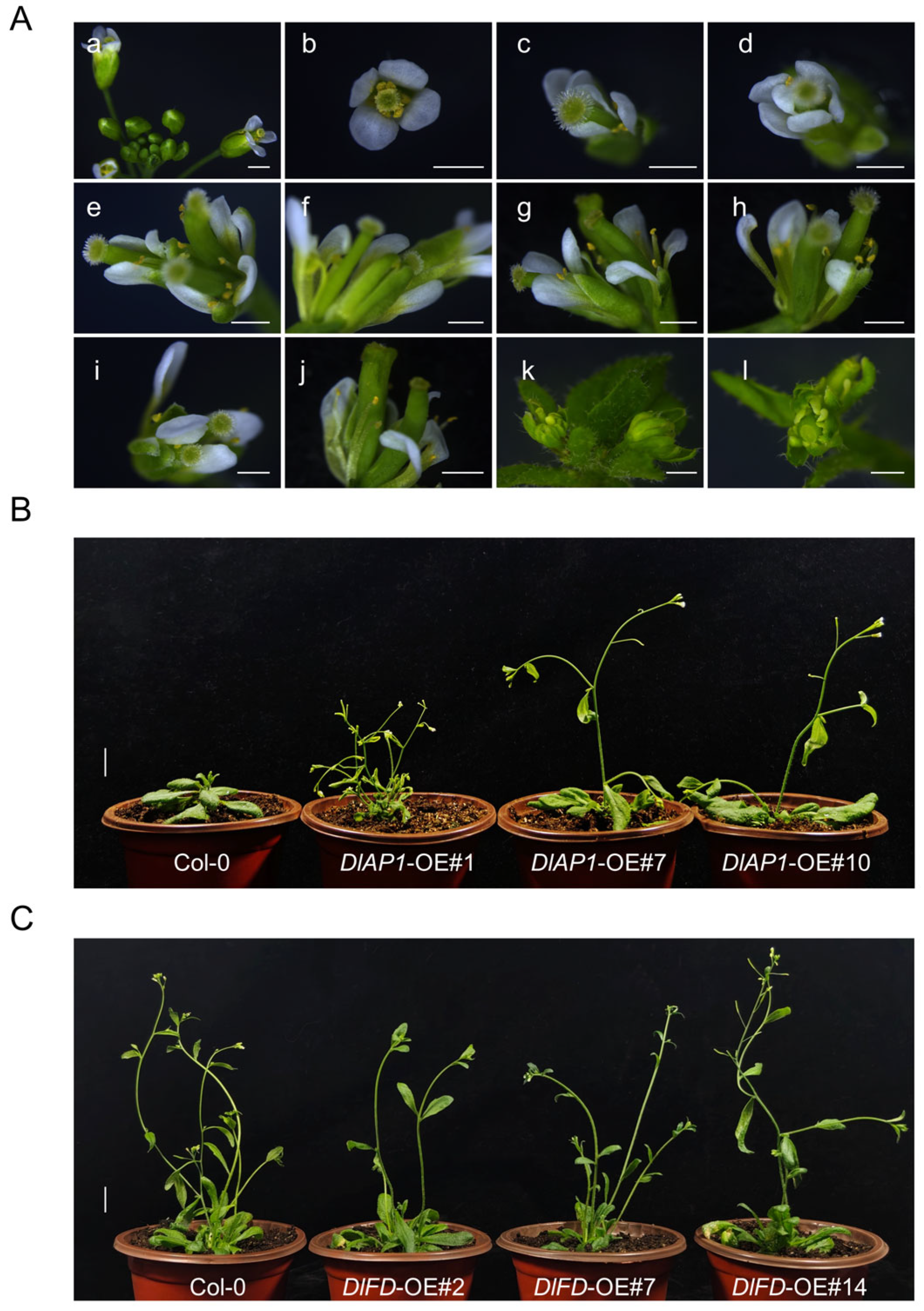 2.3. Heterologous Overexpression of DlAP1 and DlFD