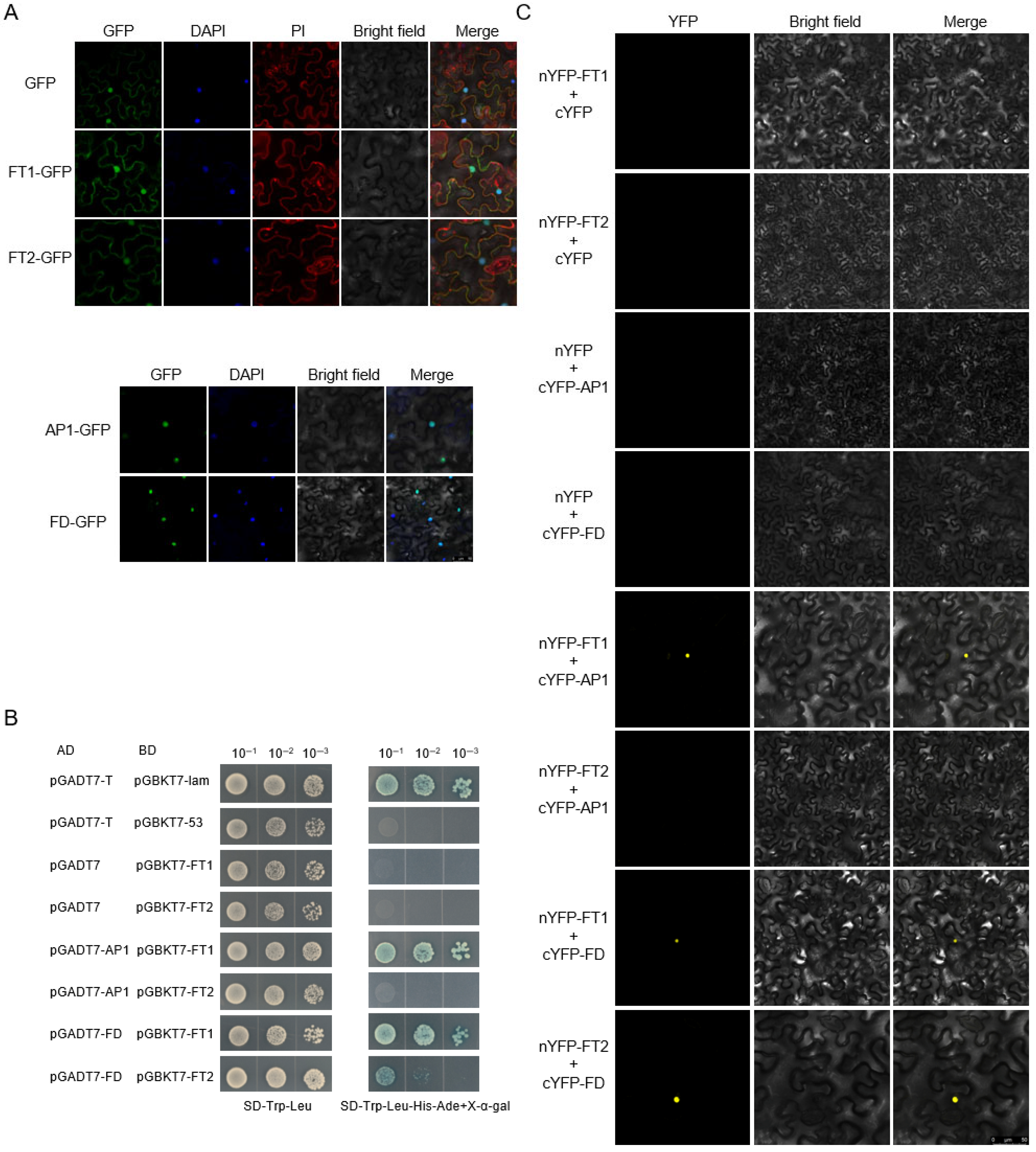 2.4. Interaction Analysis of DlFT1 and DlFT2 with DlAP1 and DlFD