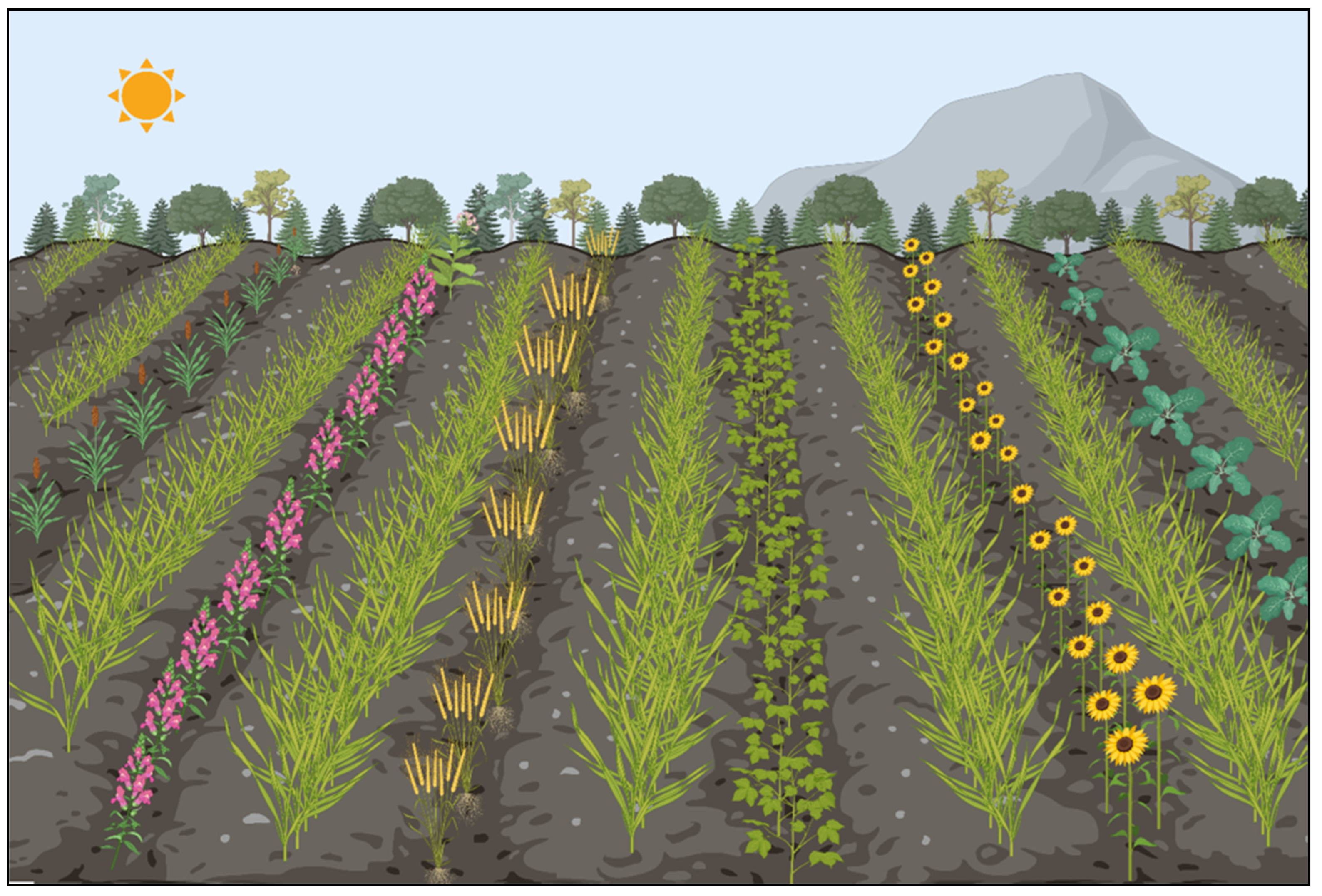 | Hedgerows | Planting native shrubs and trees along field edges. | Increases beneficial insect populations by 40–60% [25]. | Cornflower, buckwheat, and vetch. |