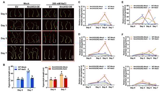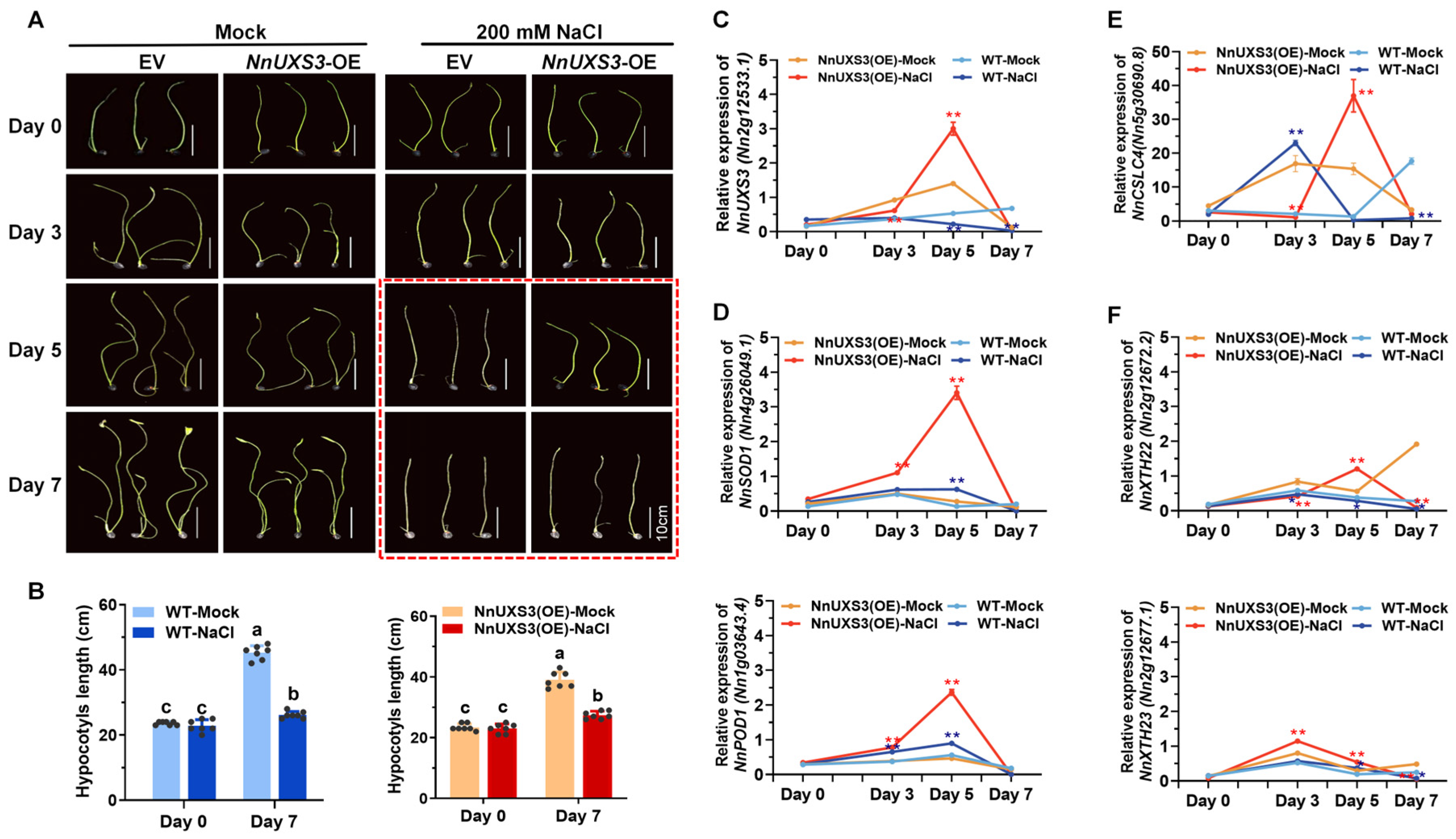 3.3. Potential Complex Regulatory Networks of NnUXS3 Orchestrating Growth and Abiotic Stress Responses