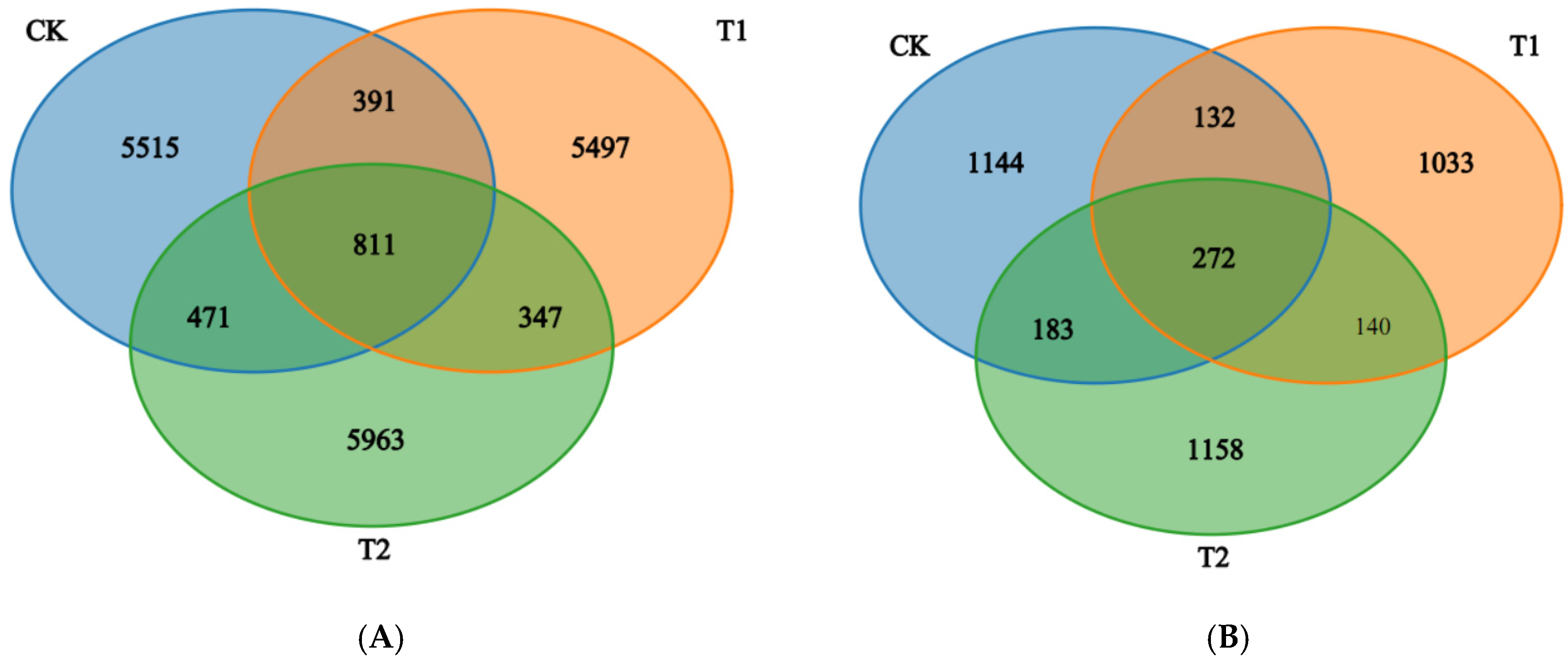 - Tan, X.L.; Guo, T.W.; Hu, X.Y.; Zhang, P.L.; Zeng, J.; Liu, X.W. Characteristics of microbial community in the rhizosphere soil of continuous potato cropping in arid regions of the loess plateau. Acta Agron. Sin. 2022, 48, 682–694. [Google Scholar] [CrossRef]