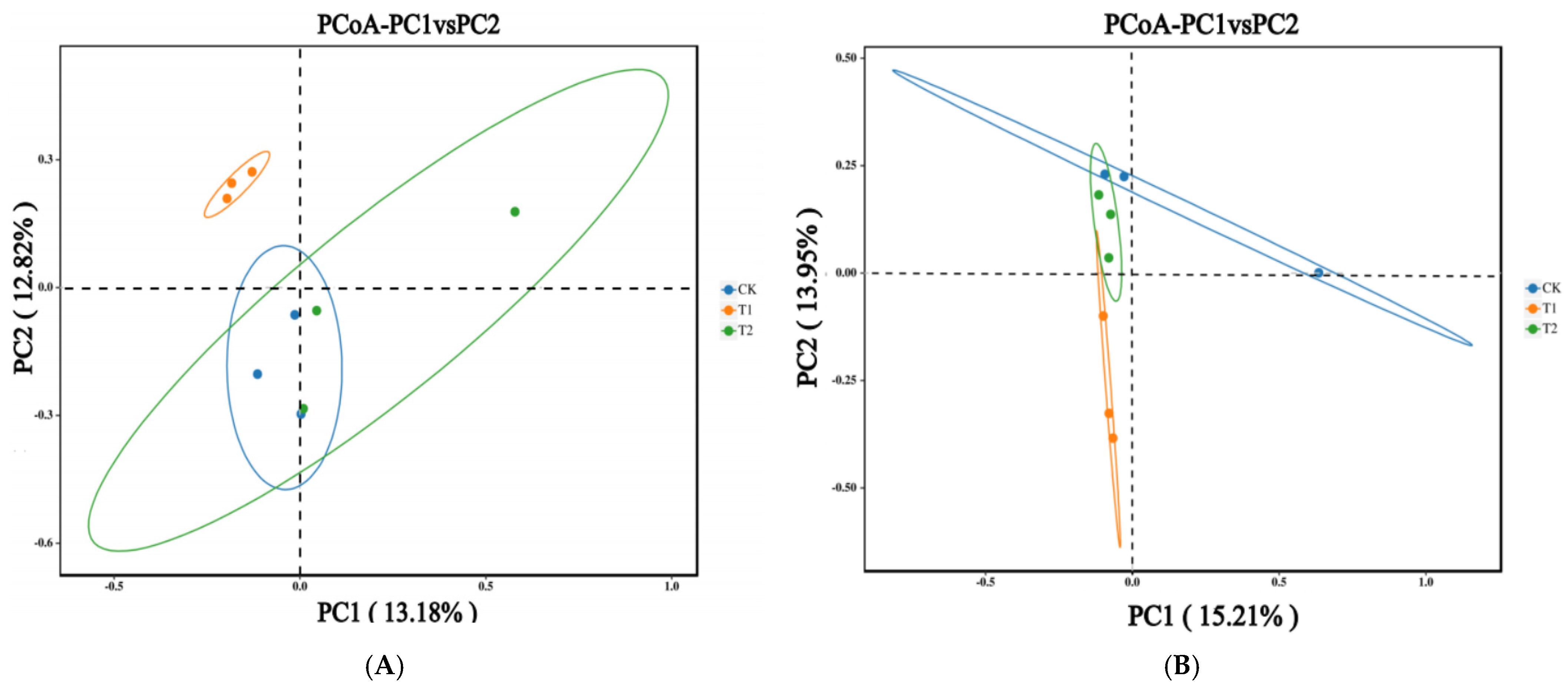 | Bacteria | T1 | 2706.17 ± 108.47 a | 2712.43 ± 108.42 a | 10.18 ± 0.04 a |