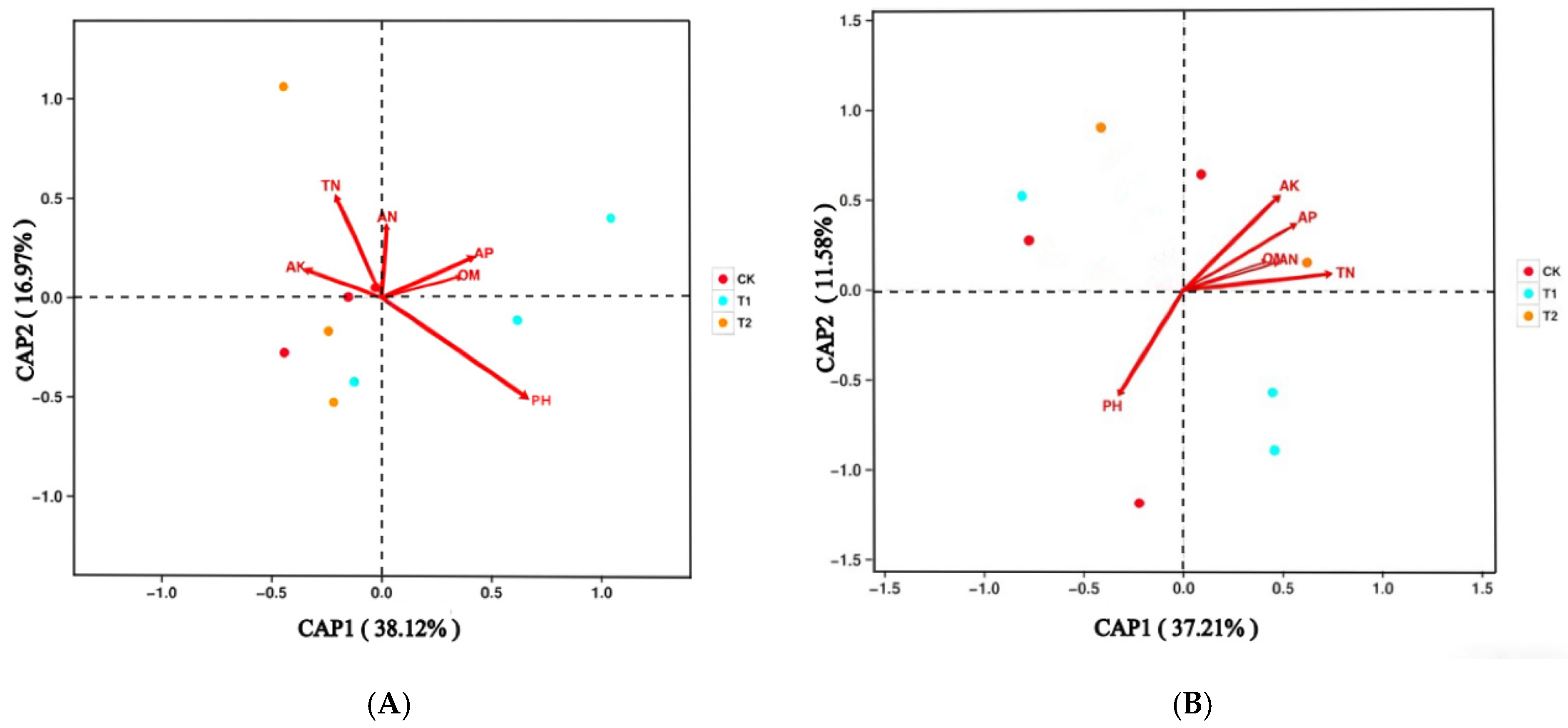 3.4. Relationships Between Microbes and Soil Chemical Parameters
