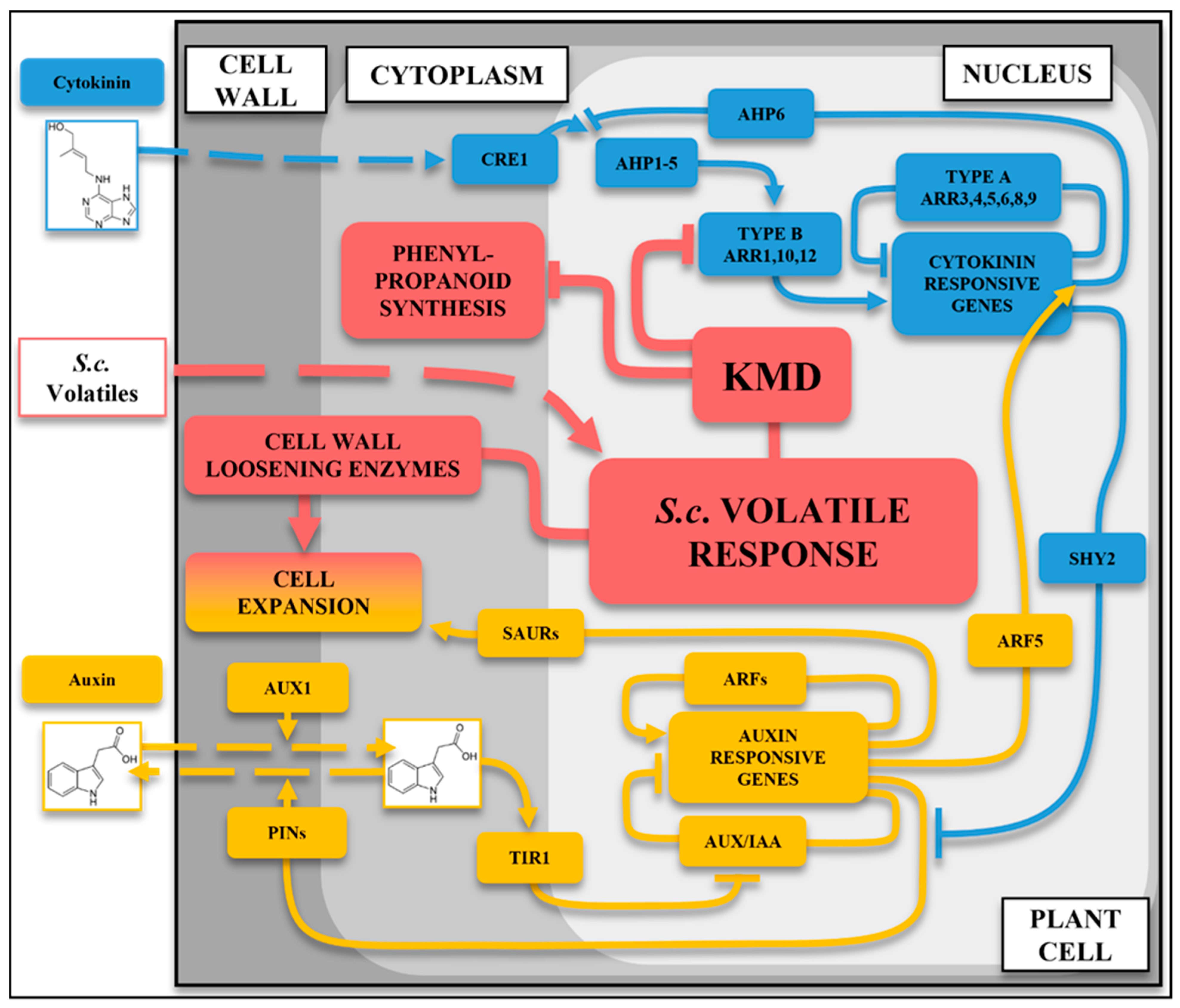 2.7. Transgenic Plants Deficient in KMD and Associated Cytokinin Response Proteins Are Unresponsive to Volatiles