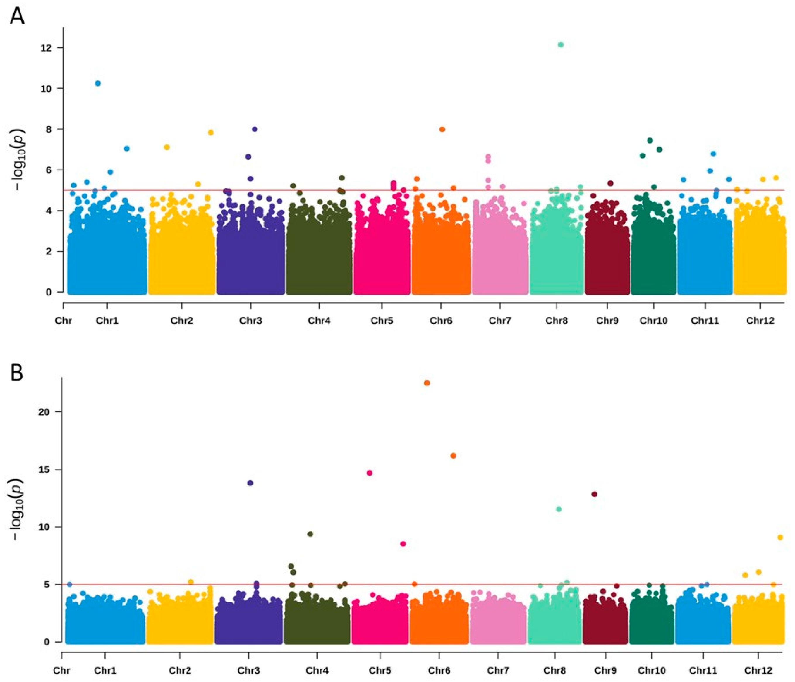 4.6. Whole Genome Association Analysis