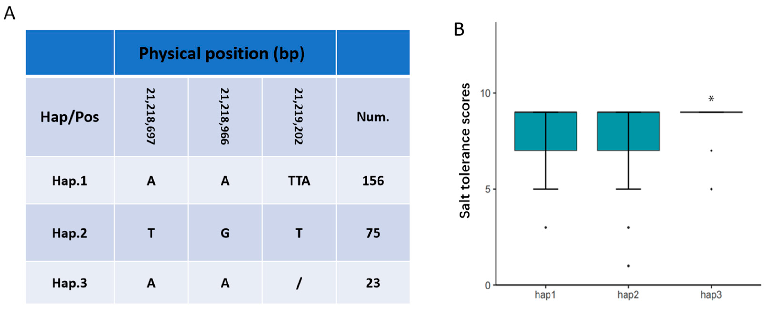 - Fan, X.; Jiang, H.; Meng, L.; Chen, J. Gene mapping, cloning and association analysis for salt tolerance in rice. Int. J. Mol. Sci. 2021, 22, 11674. [Google Scholar] [CrossRef] [PubMed]
