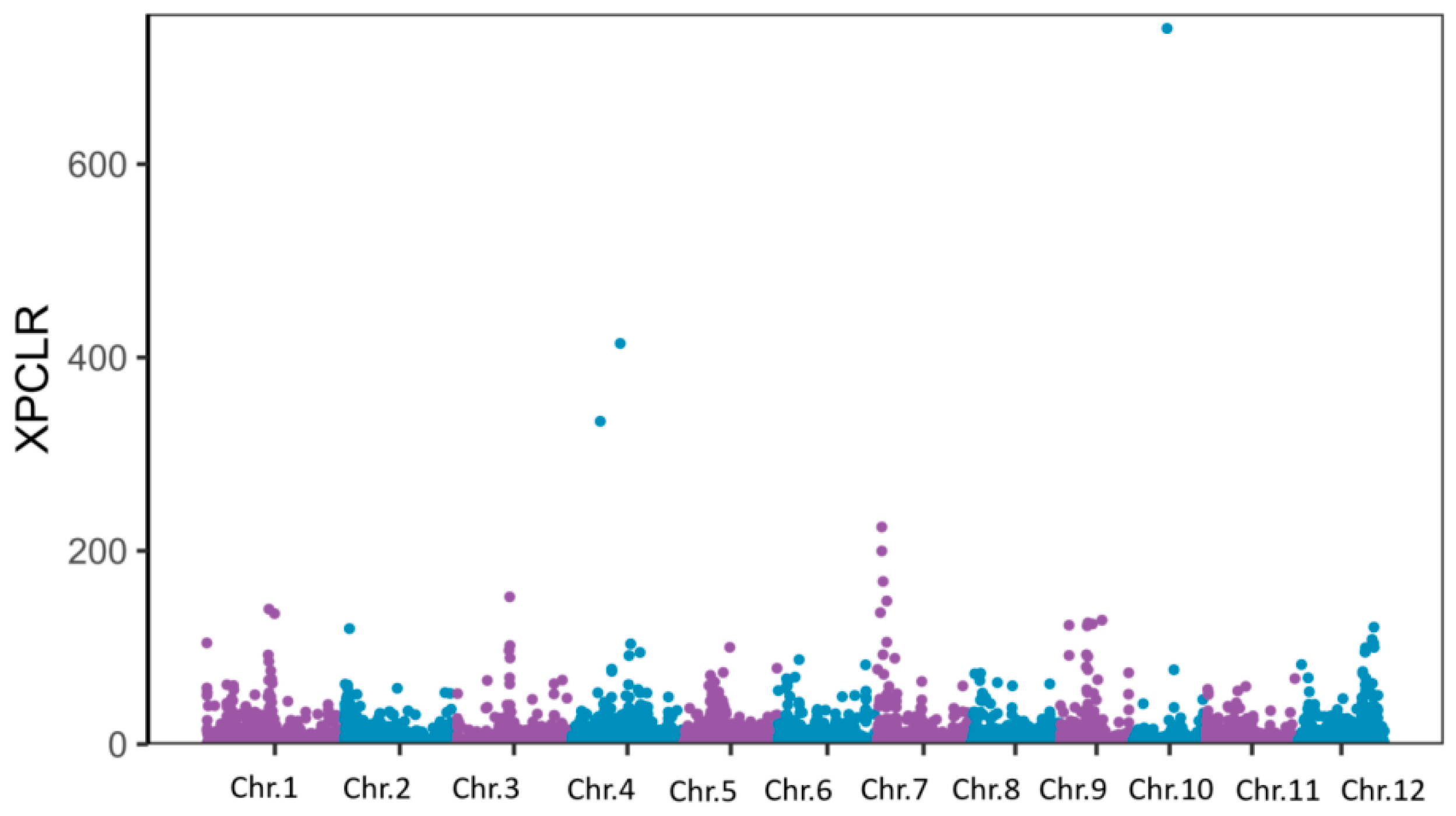 - Chen, H.; Patterson, N.; Reich, D. Population differentiation as a test for selective sweeps. Genome Res. 2010, 20, 393–402. [Google Scholar] [CrossRef]