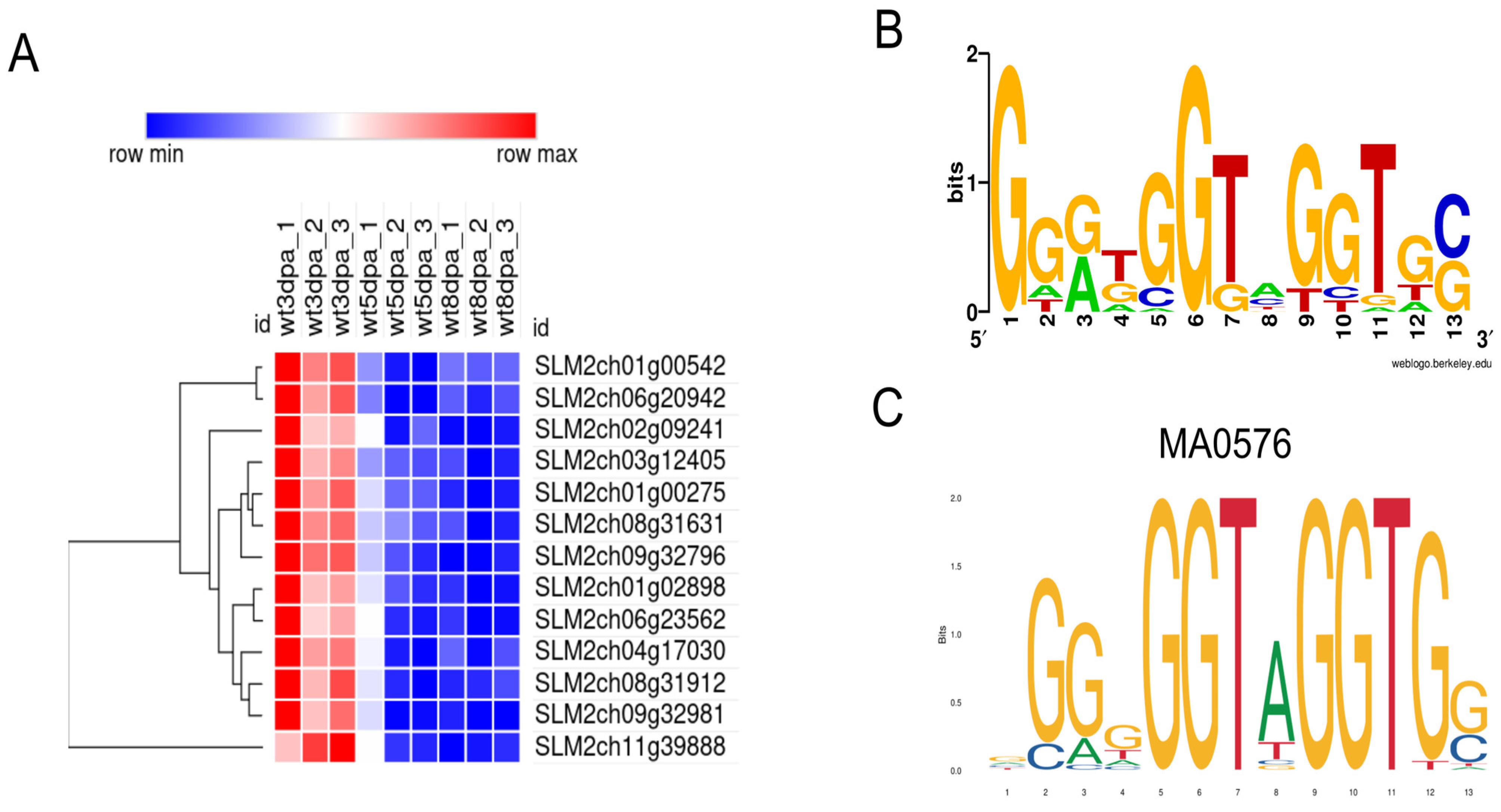 - Zhang, S.; Xu, M.; Qiu, Z.; Wang, K.; Du, Y.; Gu, L.; Cui, X. Spatiotemporal Transcriptome Provides Insights into Early Fruit Development of Tomato (Solanum lycopersicum). Sci. Rep. 2016, 6, 23173. [Google Scholar] [CrossRef]