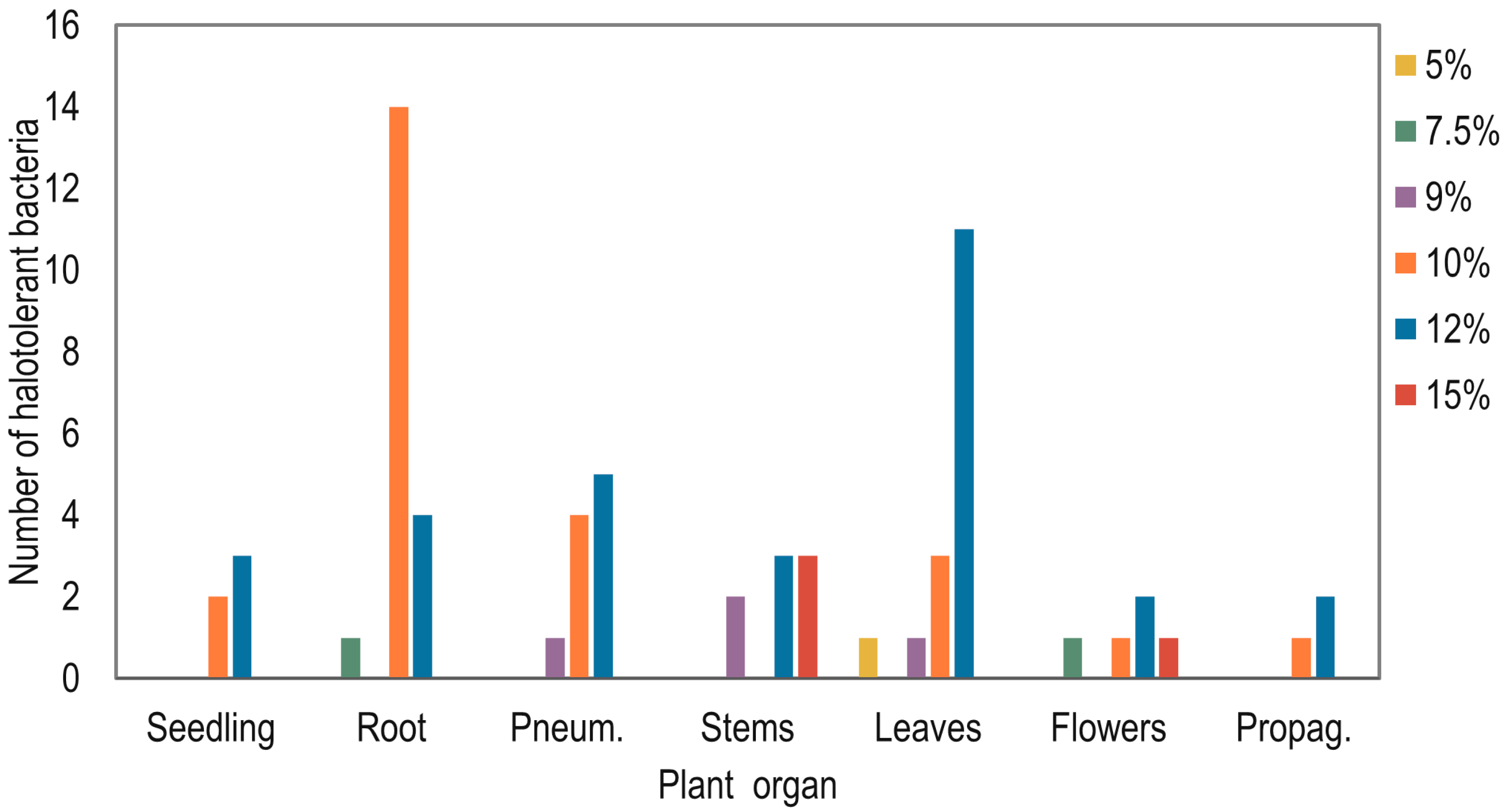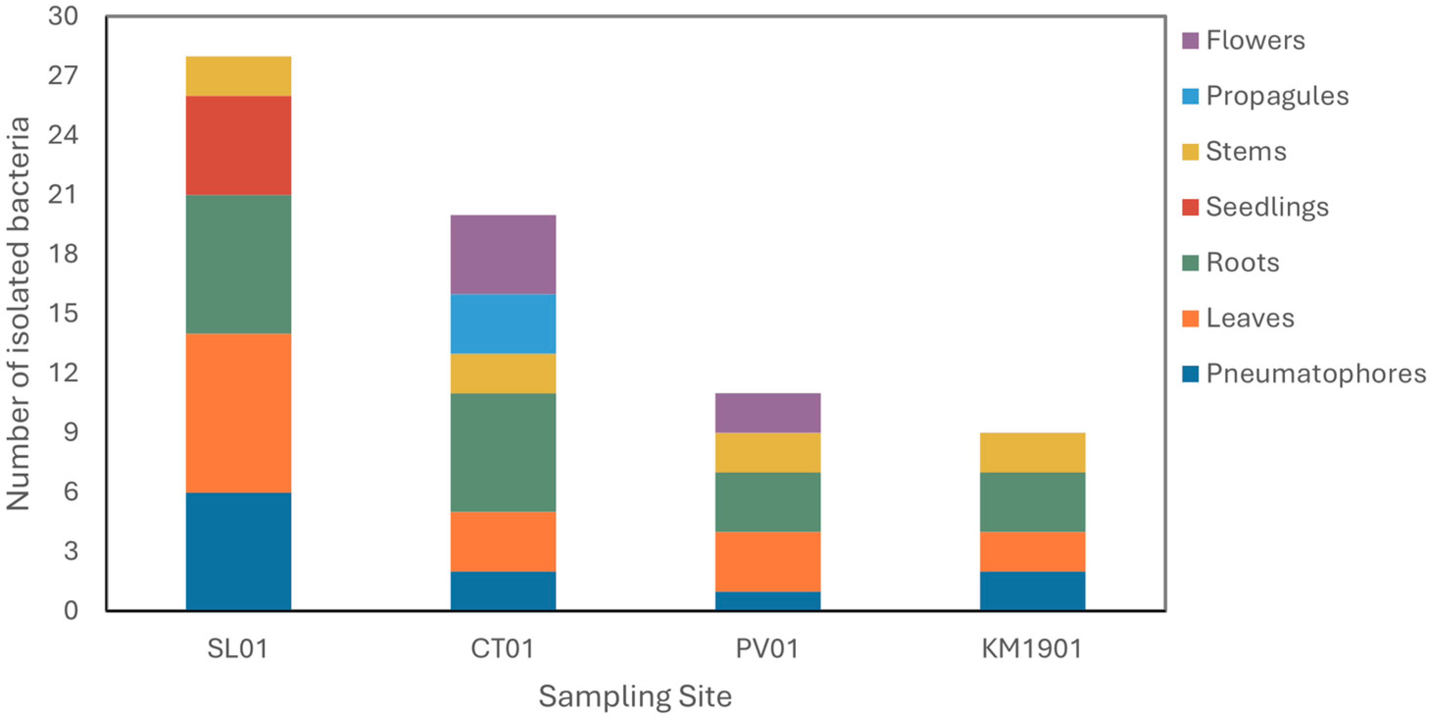 2.2. Halotolerant Endophytic Bacteria Isolated from A. germinans