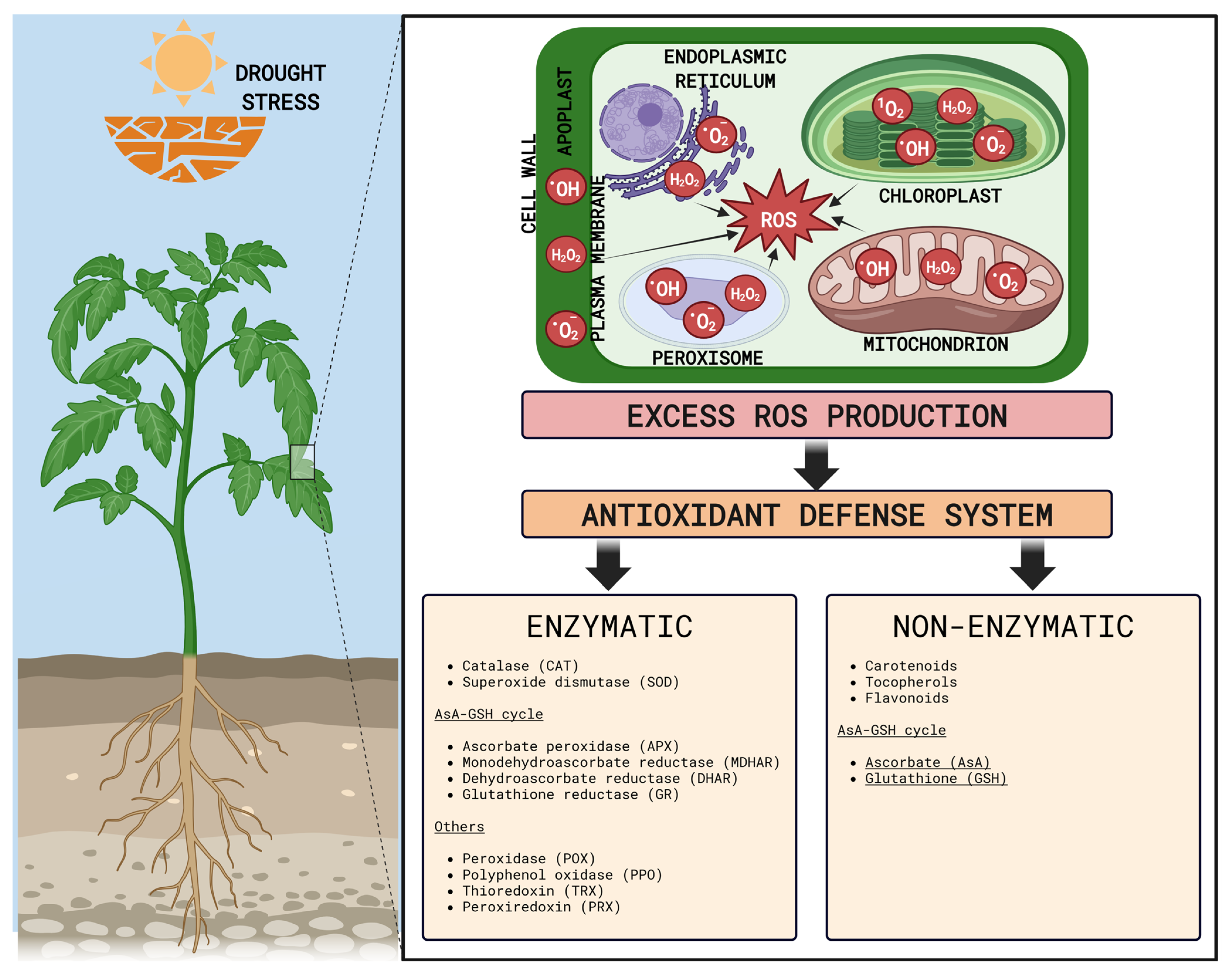 - In nature, drought stress rarely occurs in isolation. Therefore, experimental designs should consider realistic combinations of various factors, such as water scarcity, high irradiance, heat waves, and elevated atmospheric CO2 levels, projected over the coming decades, providing a comprehensive picture of the climatic relationships relevant to plant survival in future agroecosystems.