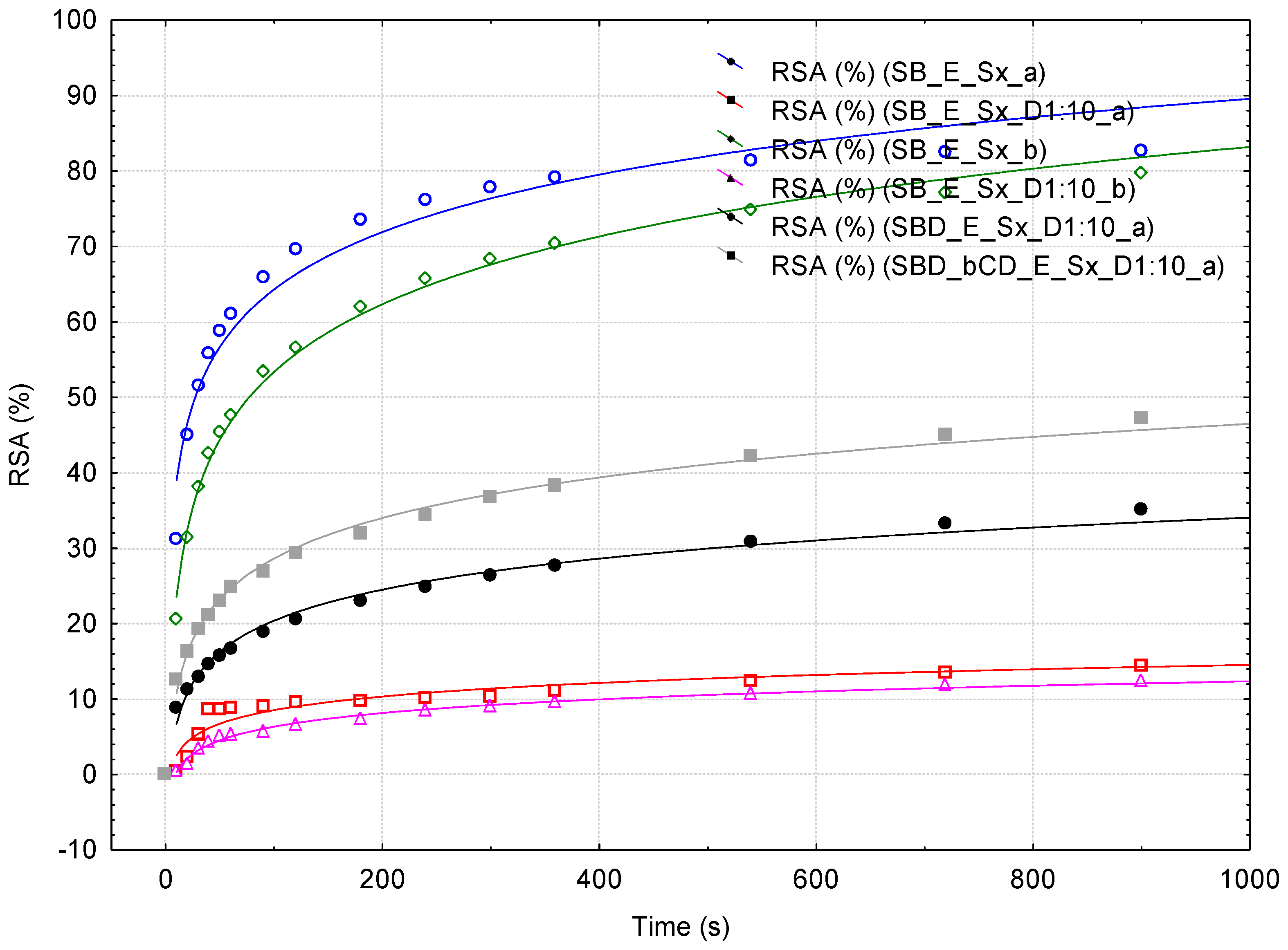 | Sample Code | RSA (%) (@ ½ min) | RSA (%) (@ 3 min) | RSA (%) (@ 15 min) |