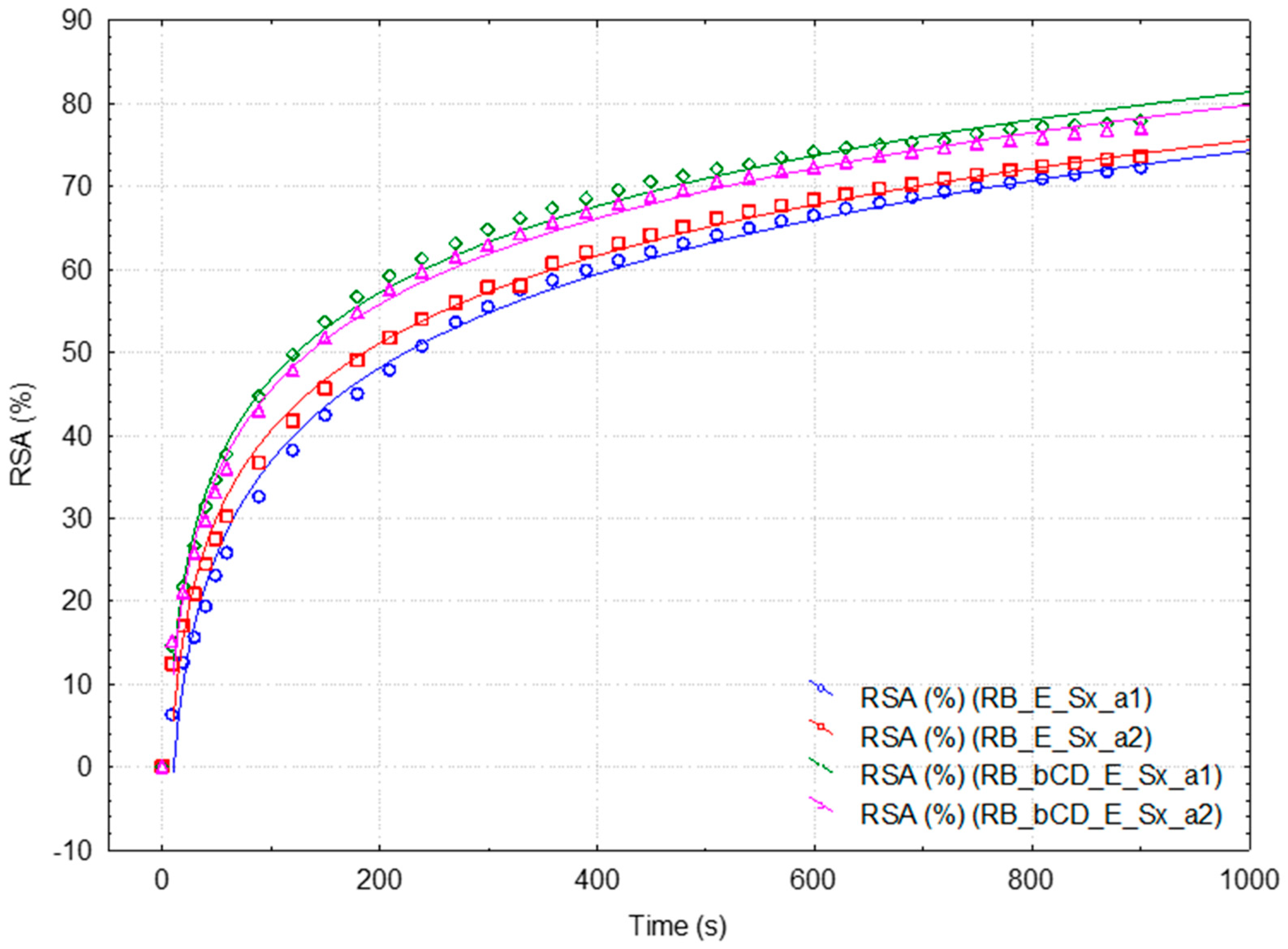 2.4. Kinetics of the DPPH· Reaction with Antioxidant Compounds in Berry Extracts with or Without β-Cyclodextrin as an Additive
