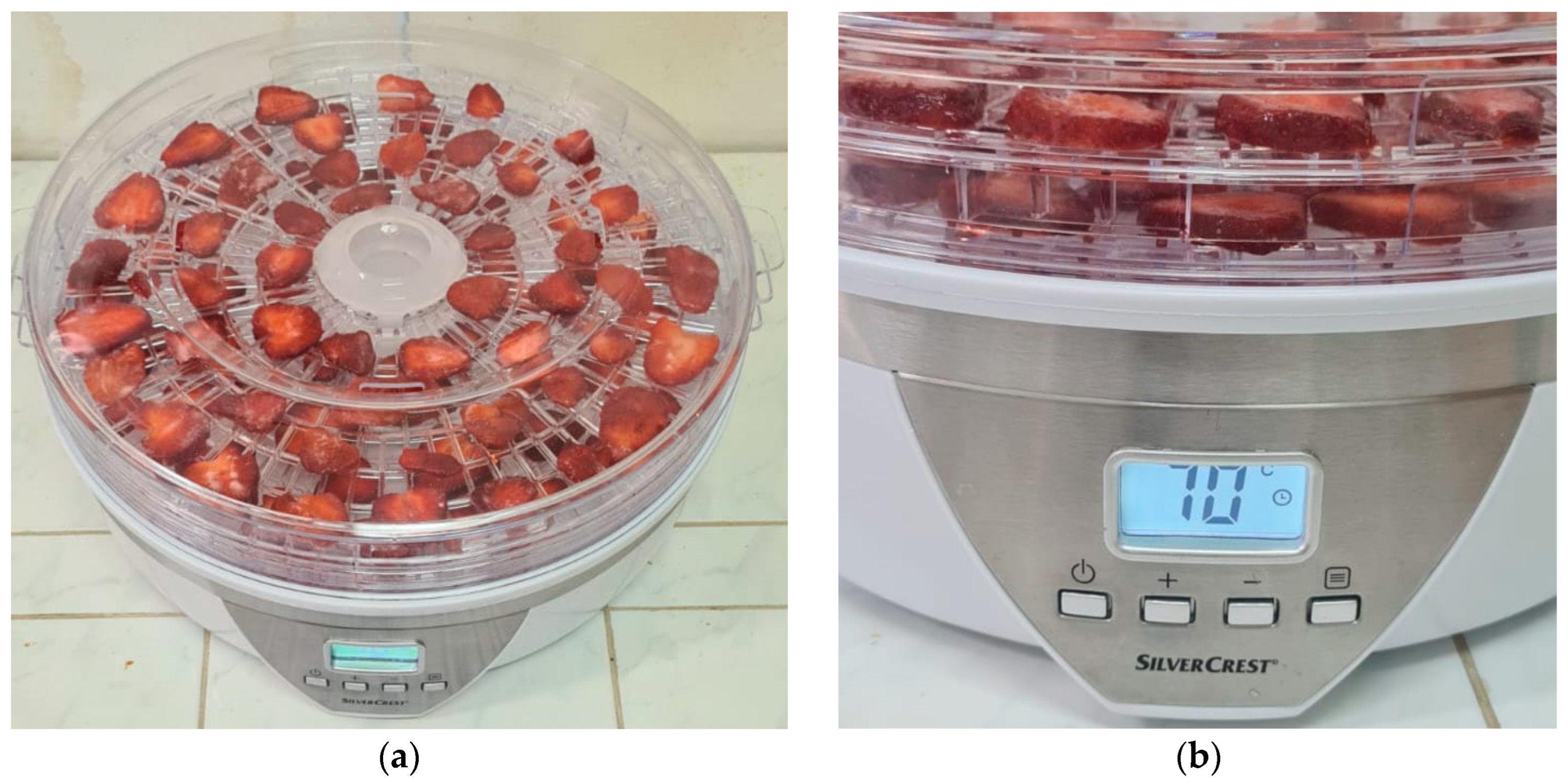 3.2. Dehydration of Strawberry Fruits