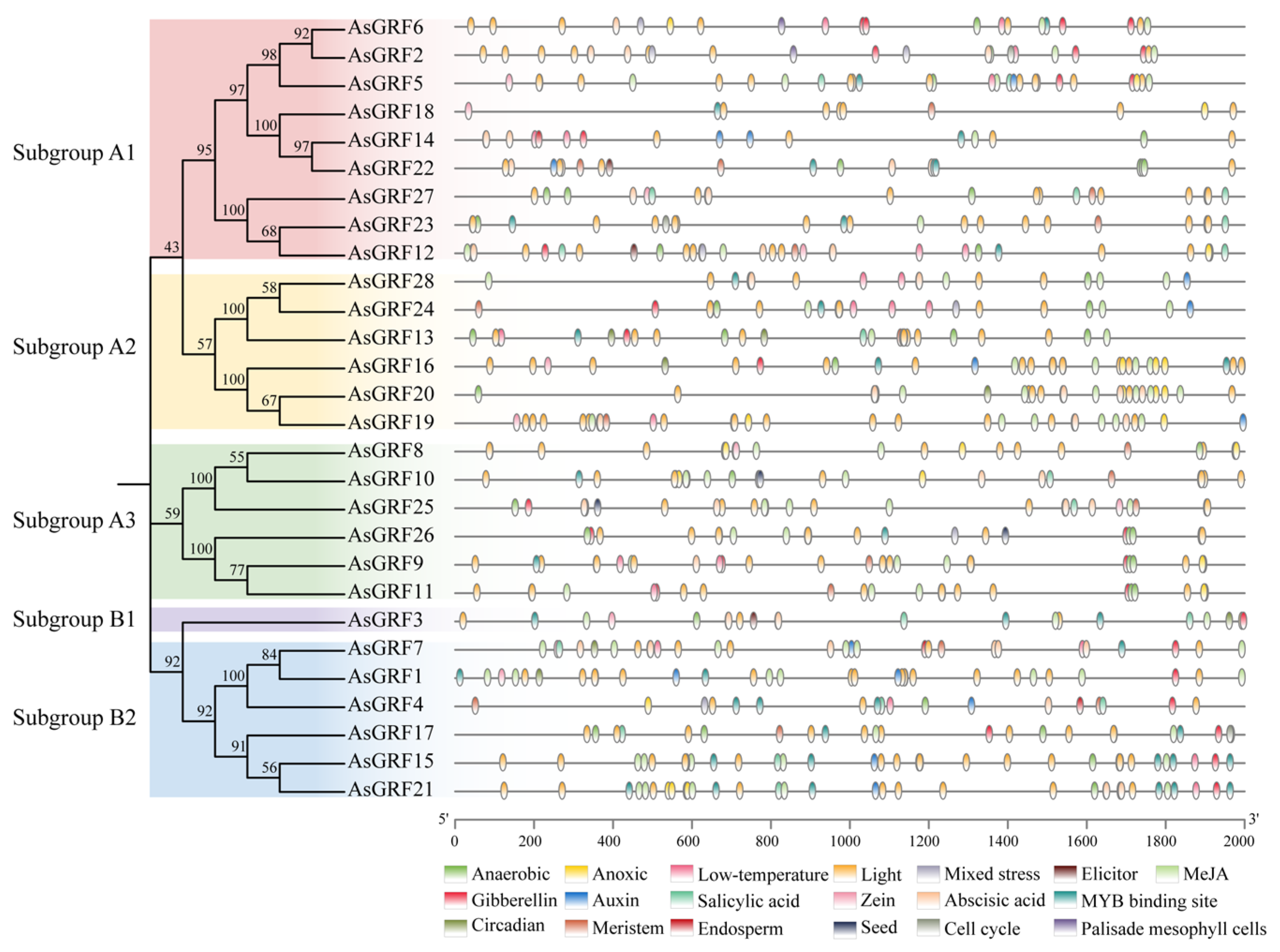 2.4. Cis-Acting Element Prediction of AsGRF Genes
