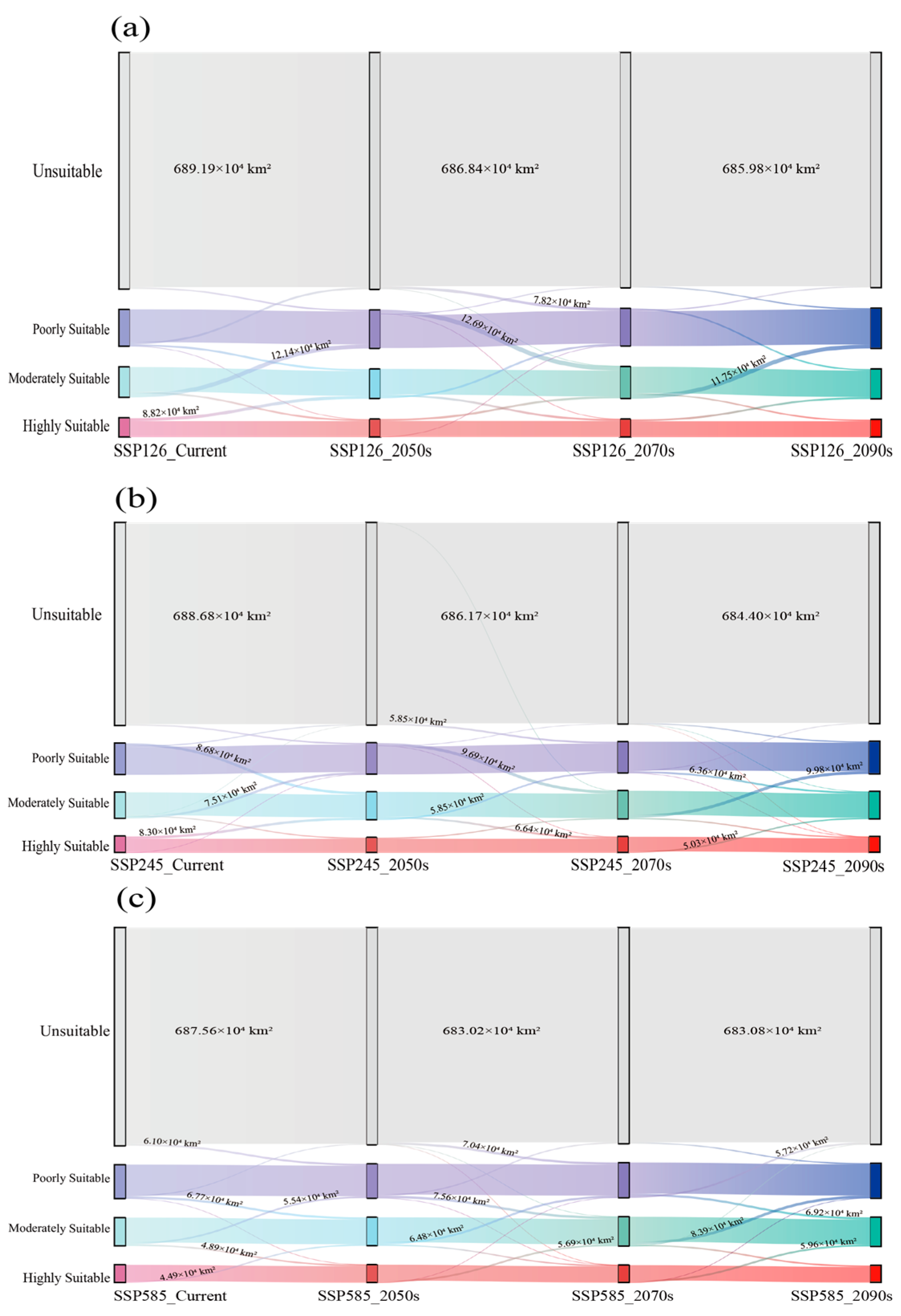 | Suitability Class | Current | SSP126 | SSP245 | SSP585 | ||||||