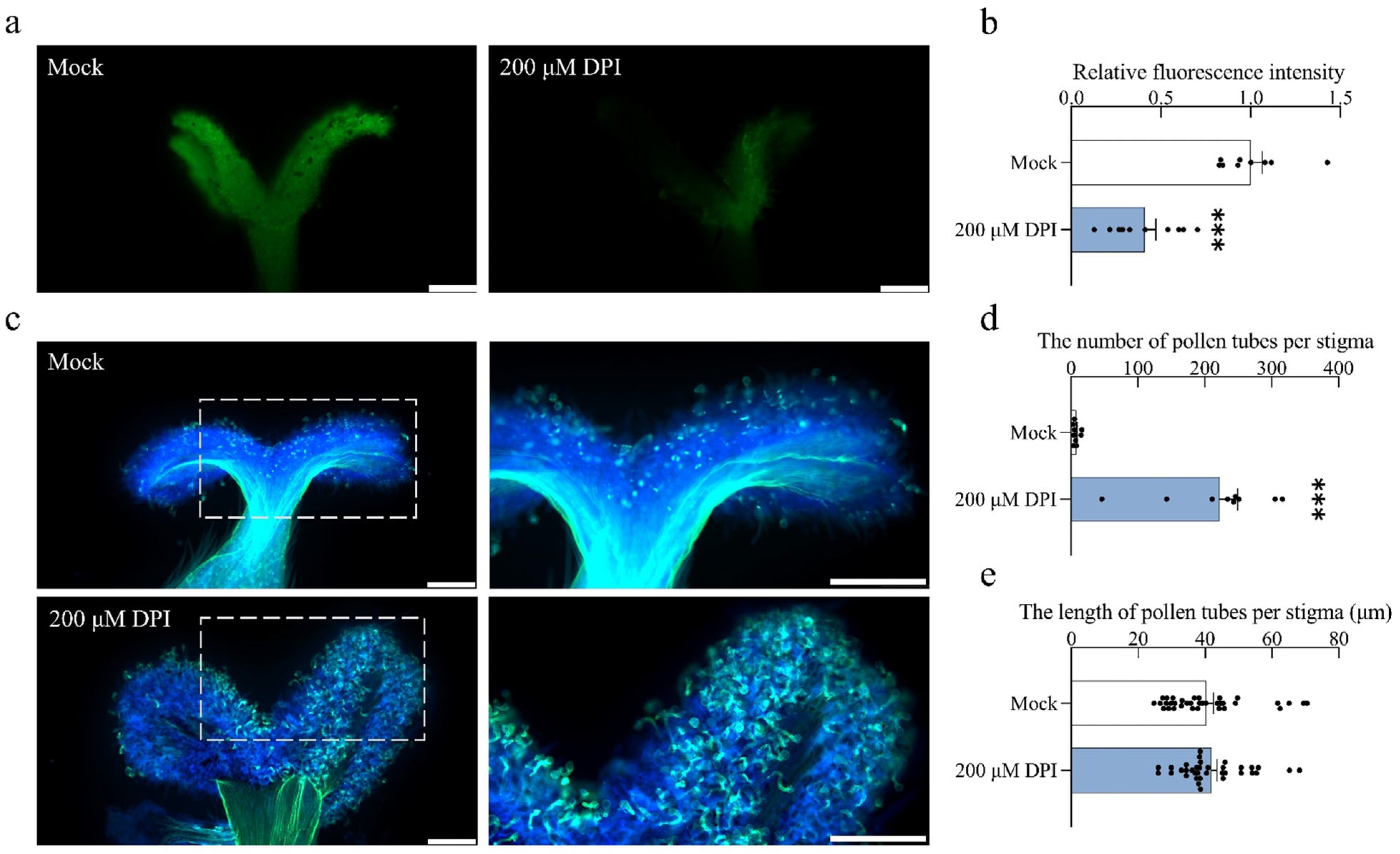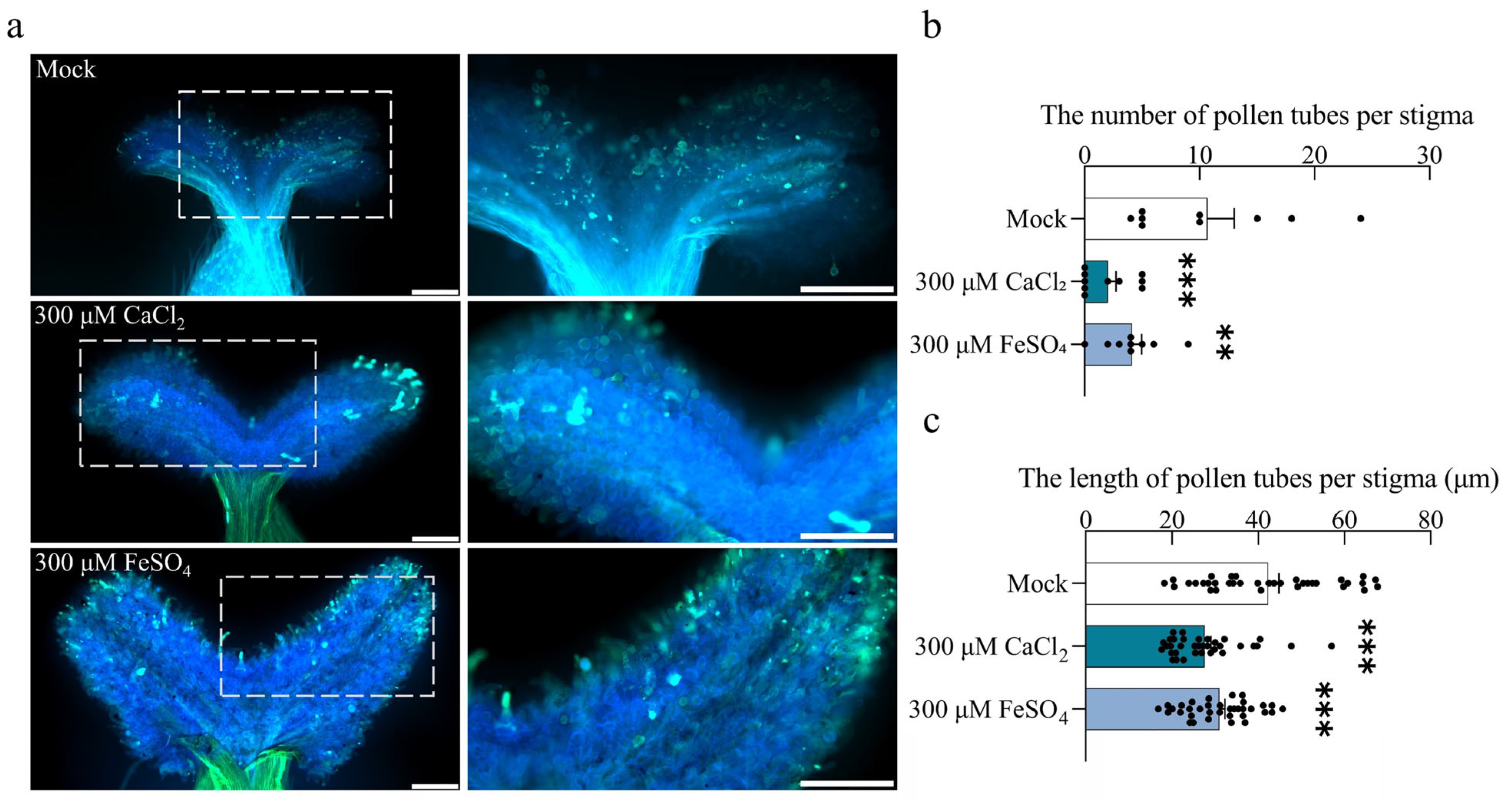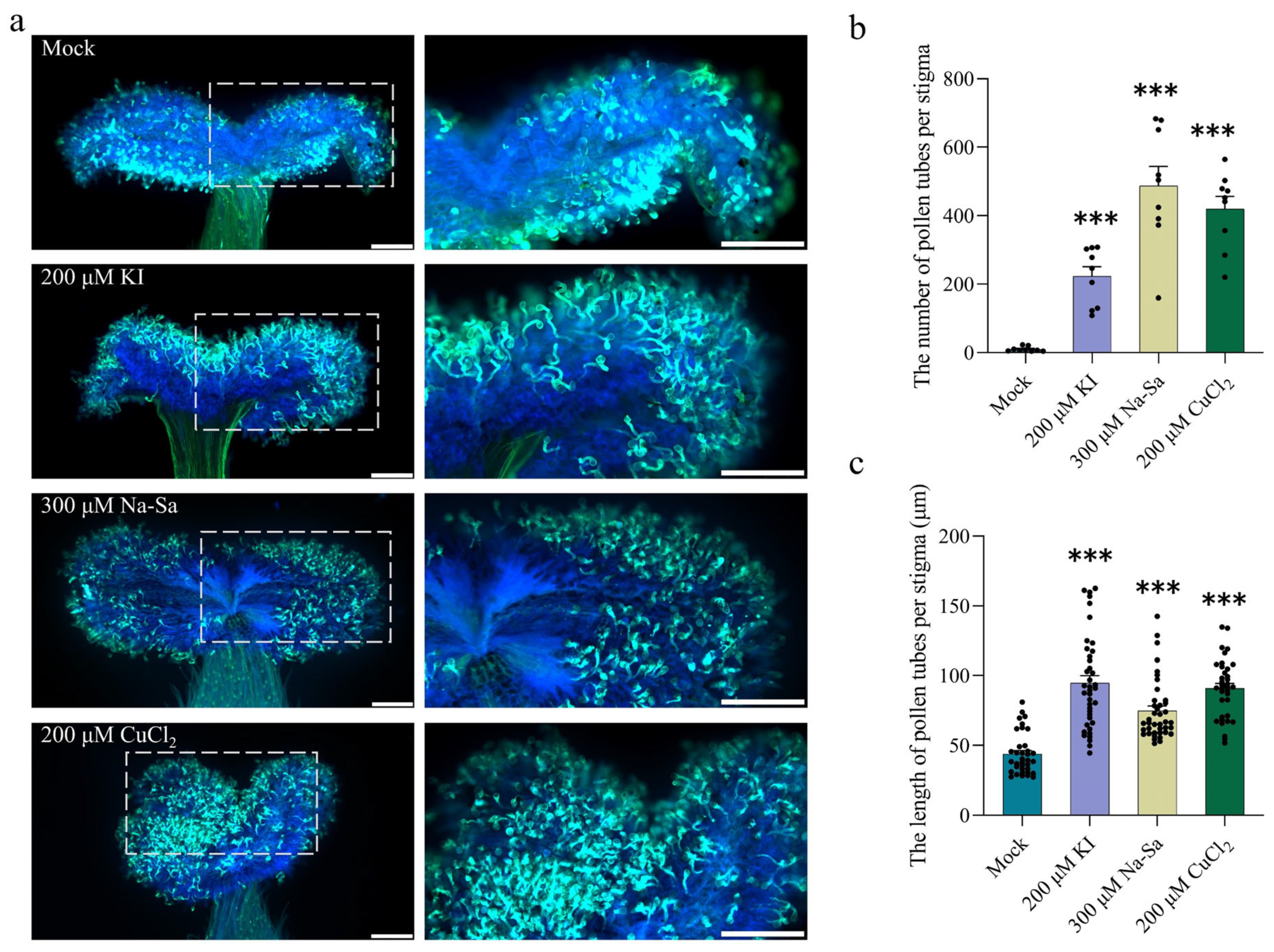 2.5. Increase in Stigmatic ROS Inhibits Pollen Tube Germination and Elongation