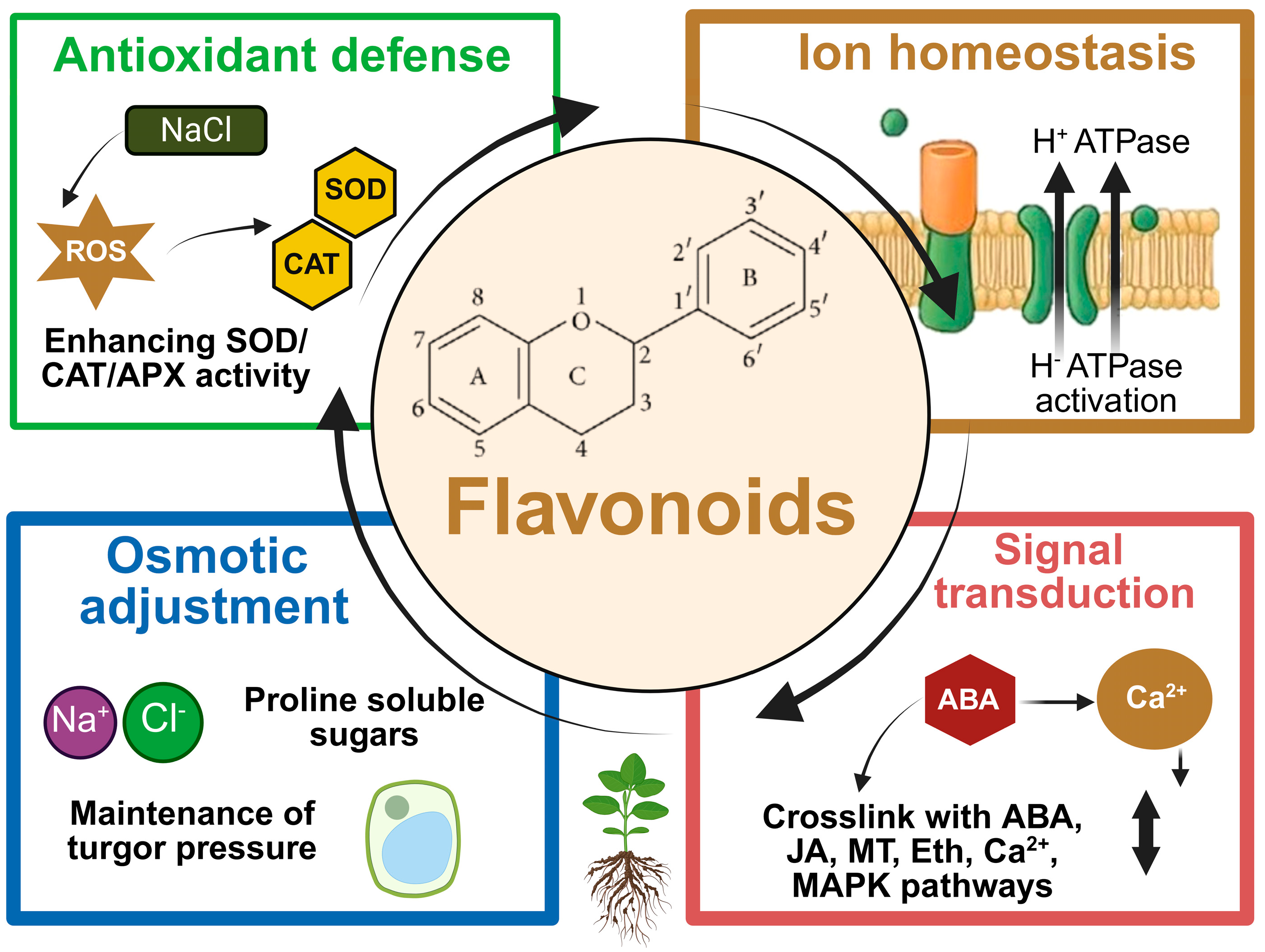 - Specificity and context dependence:Effects depend on flavonoid class, localization, and dose; different branches can have opposing outcomes.Responses vary across species/genotypes and under combined stresses (salt + drought/heat).