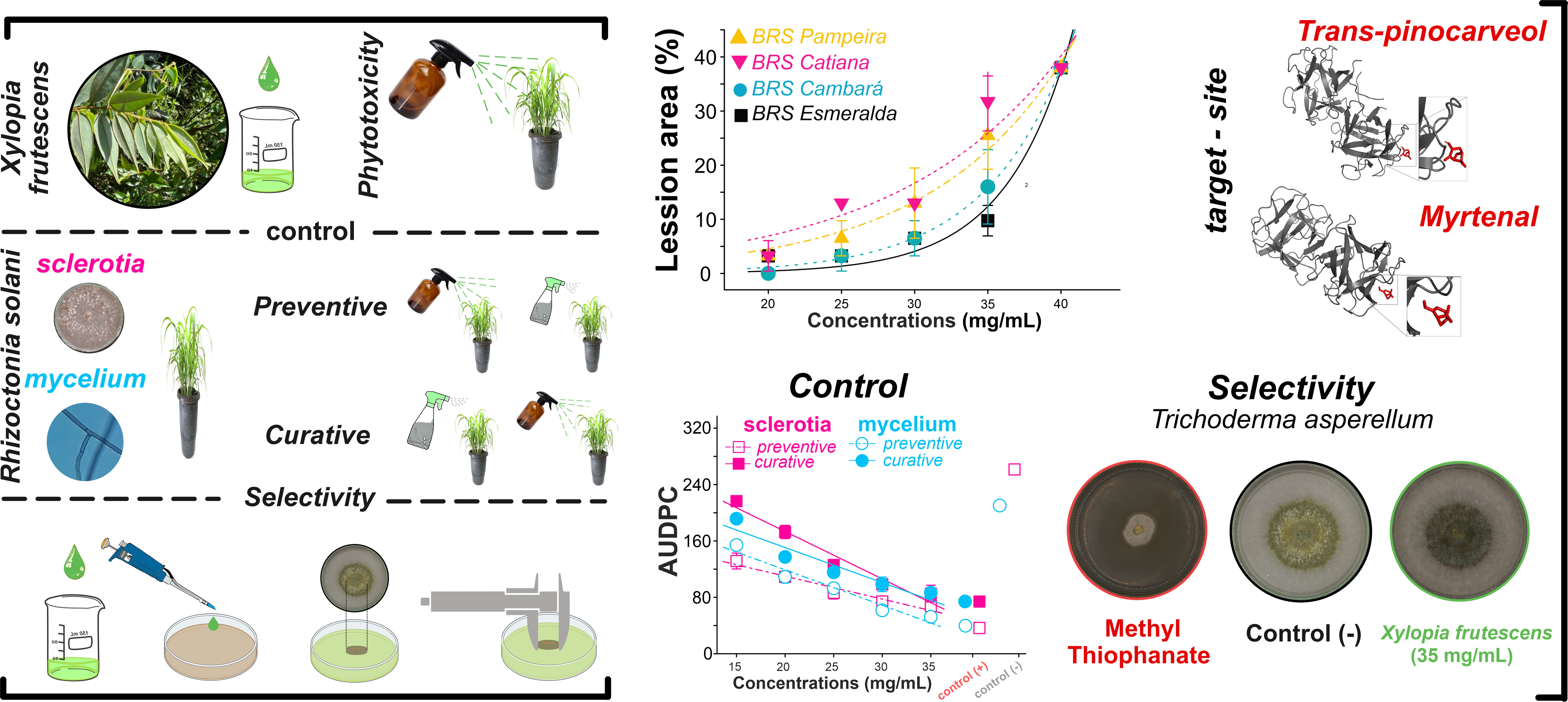 Fernandes PRS, Mourão DdSC, Viteri LO, Silva Júnior AA, Bilal M, Kanwal A, Herrera OM, Gonzalez MA, Souza LA, Amaral AG, et al. Essential Oil of Xylopia frutescens Controls Rice Sheath Blight Without Harming the Beneficial Biocontrol Agent Trichoderma asperellum. Plants. 2026; 15(1):31. https://doi.org/10.3390/plants15010031