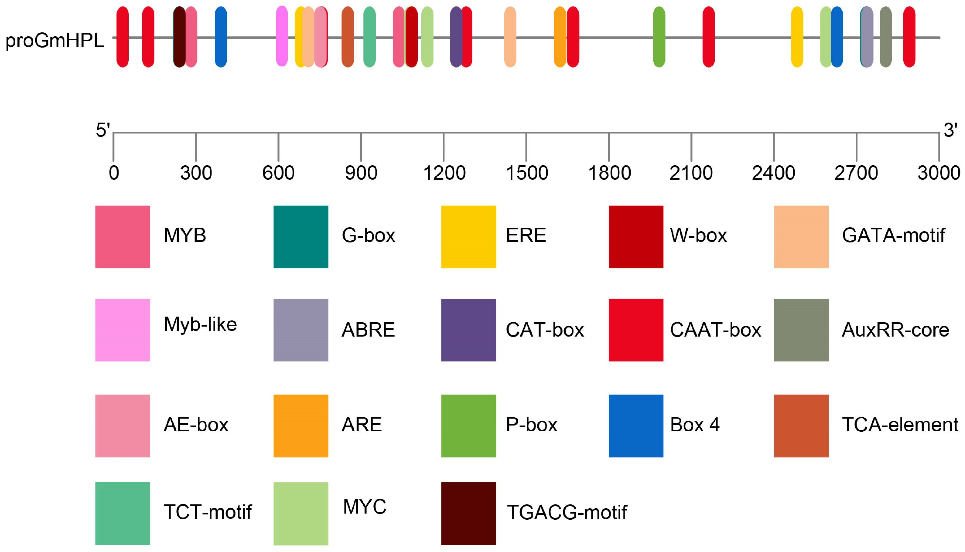 Prediction of cis-elements in the GmHPL promoter.