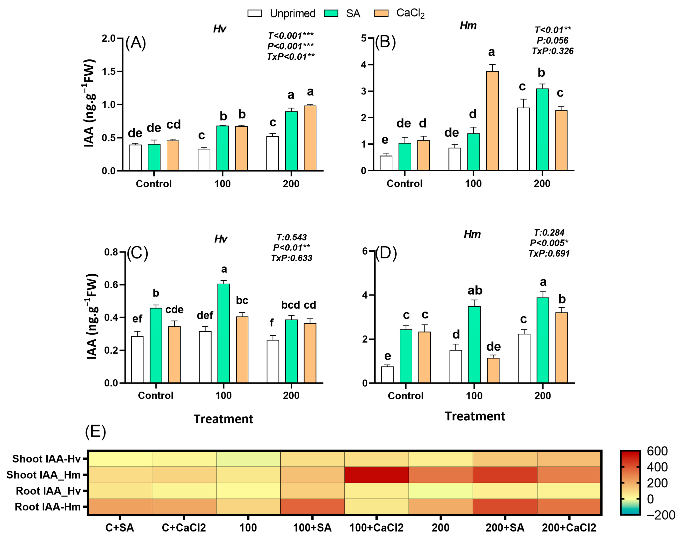 Ben Youssef R, Jelali N, Martínez-Melgarejo PA, Albacete A, Abdelly C, Pérez-Alfocea F, Martínez-Andújar C. Growth and Hormonal Responses to Salicylic Acid and Calcium Chloride Seed Priming in Domestic and Wild Salt-Tolerant Barley Species Under Saline Conditions. Plants. 2026; 15(1):64. https://doi.org/10.3390/plants15010064