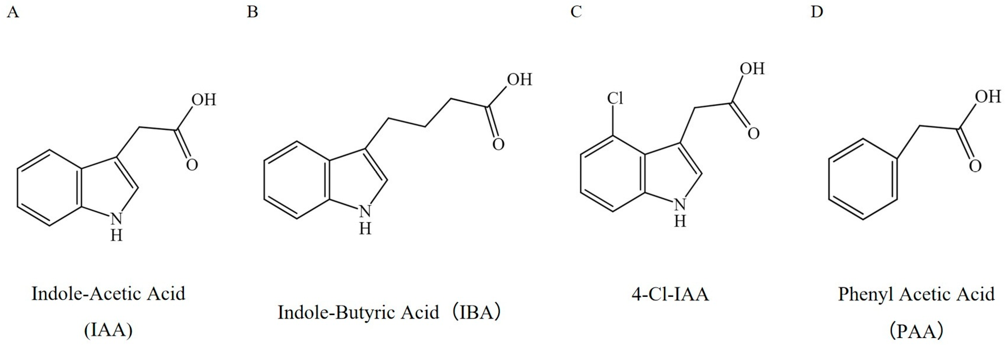 - Perez, V.C.; Zhao, H.; Lin, M.; Kim, J. Occurrence, function, and biosynthesis of the natural auxin phenylacetic acid (PAA) in plants. Plants 2023, 12, 266. [Google Scholar] [CrossRef] [PubMed]