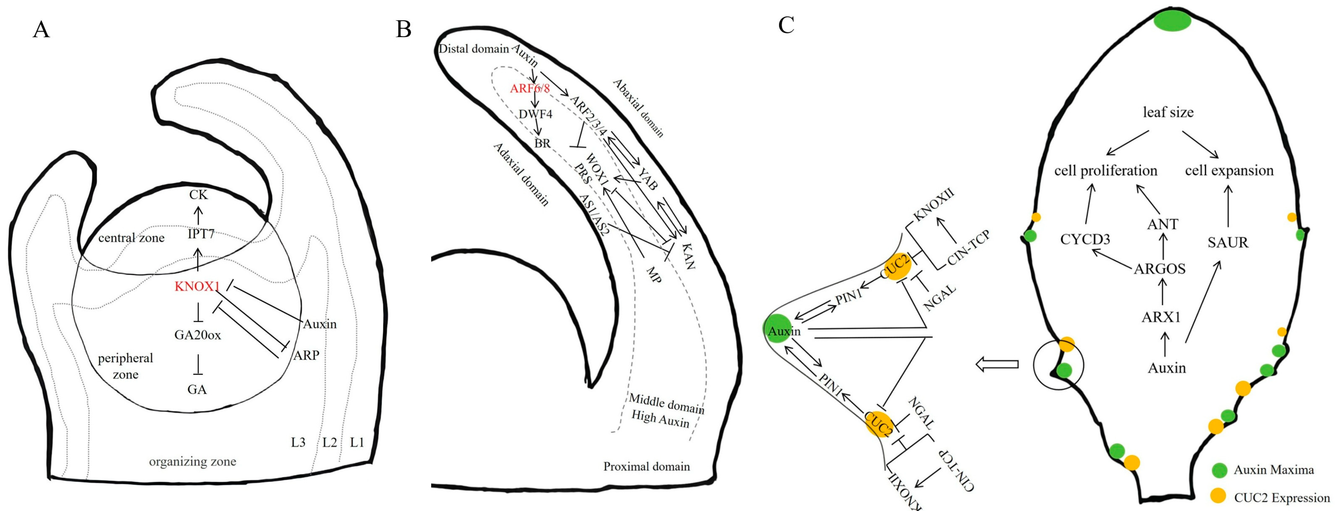 - Wang, H.; Kong, F.; Zhou, C. From genes to networks: The genetic control of leaf development. J. Integr. Plant Biol. 2021, 63, 1181–1196. [Google Scholar] [CrossRef]