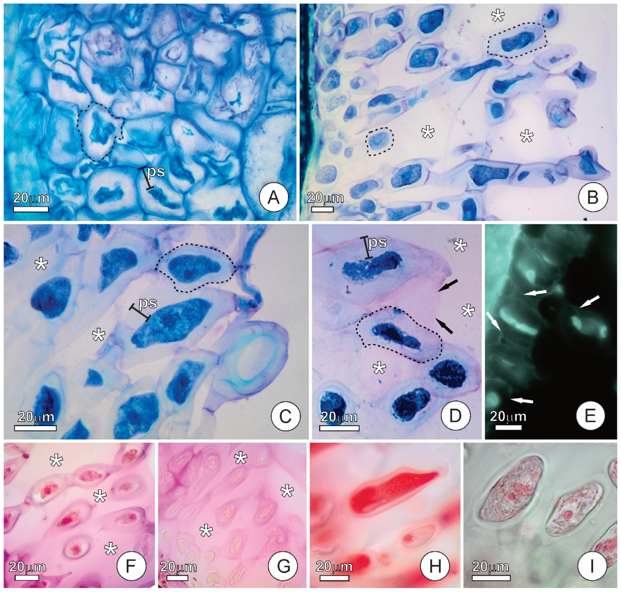 - Mastroberti, A.A.; Mariath, J.E.A. Development of mucilage cells of Araucaria angustifolia (Araucariaceae). Protoplasma 2008, 232, 233–245. [Google Scholar] [CrossRef]