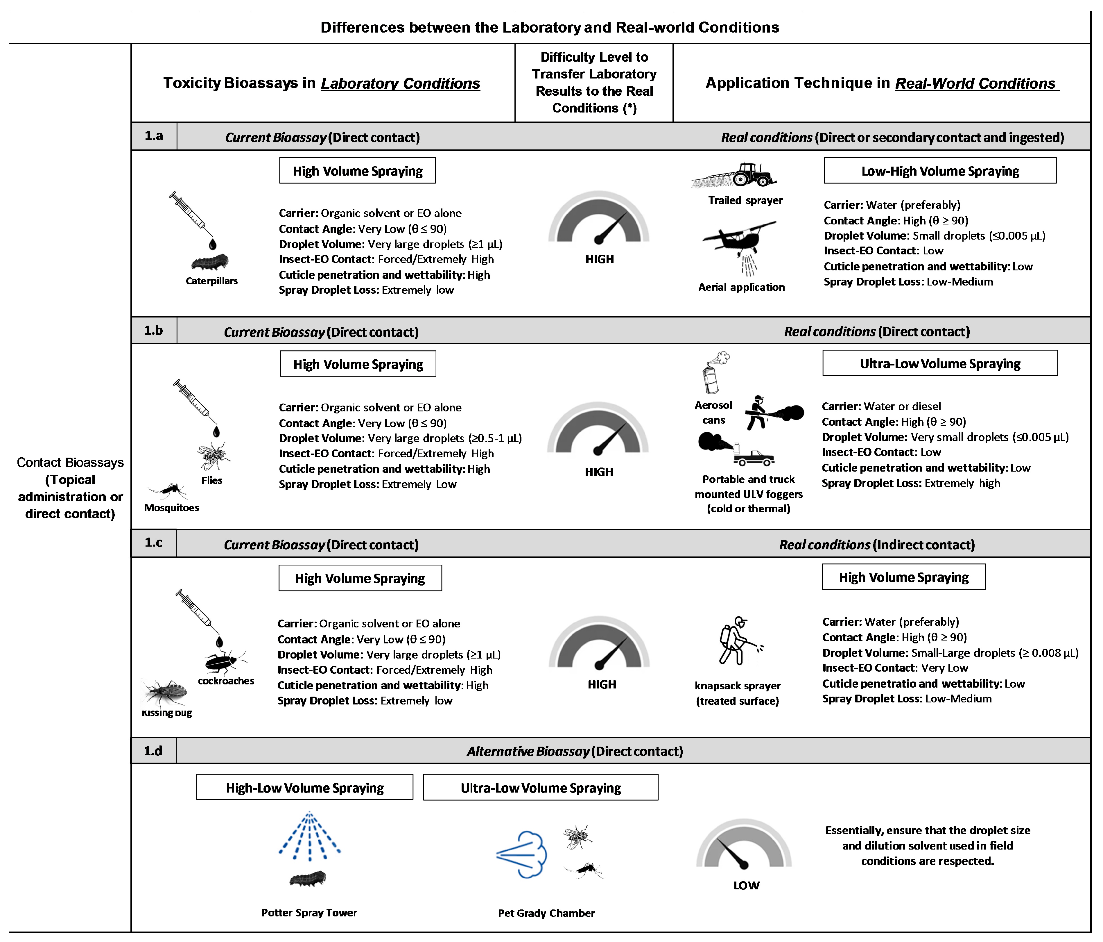 - Replicate the field application technique in the laboratory. The primary mode of insect control in the field, whether through direct contact during spraying, indirect contact with treated surfaces, or fumigation, should guide the design of the laboratory assay. Understanding the ecological context, such as insect behavior, feeding habits, and resting sites, is essential for realistic laboratory simulations.Briefly, the appropriate bioassay type should be selected based on the field control method.