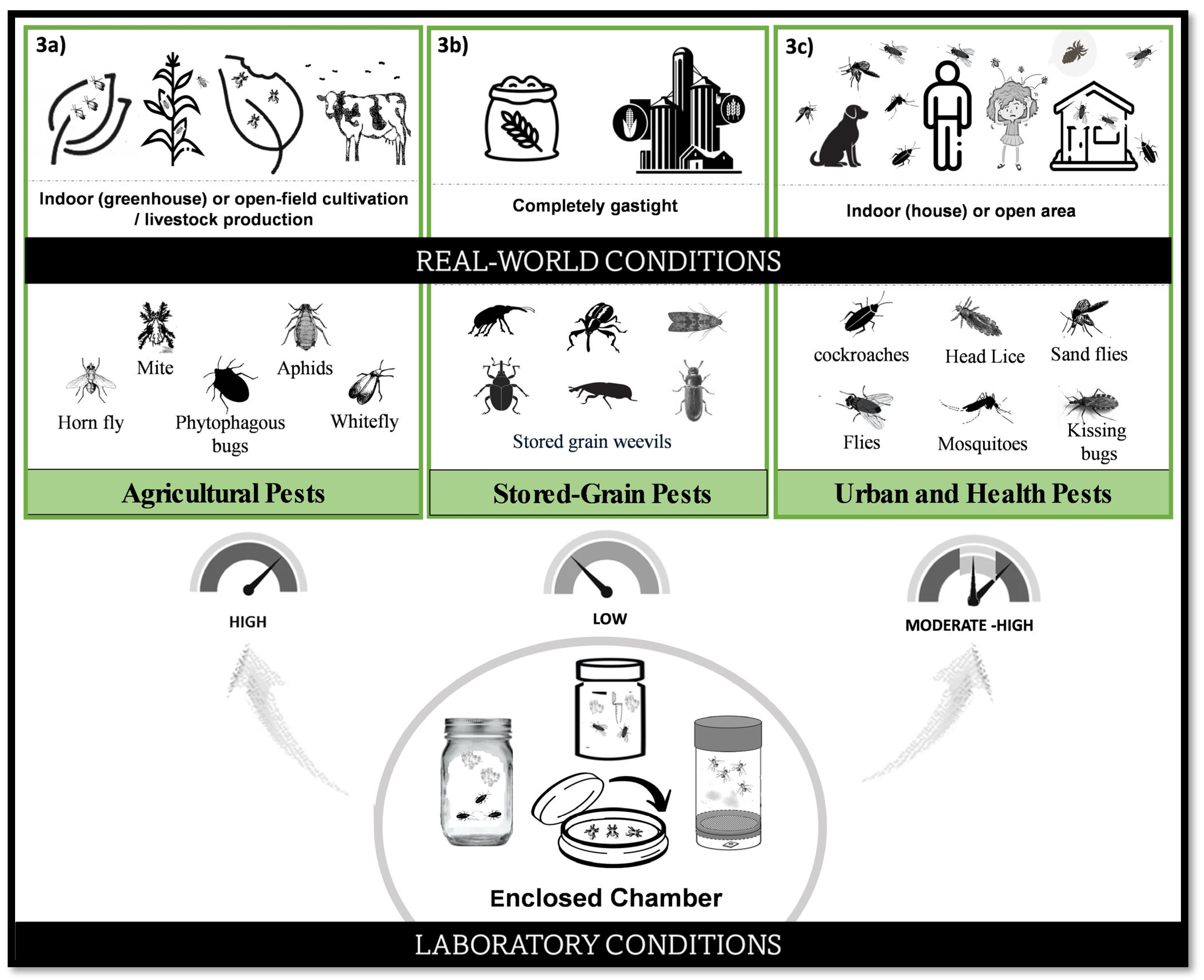 - Airflow, temperature, and container volume should be considered as these factors strongly influence on vapor distribution and insect exposure.