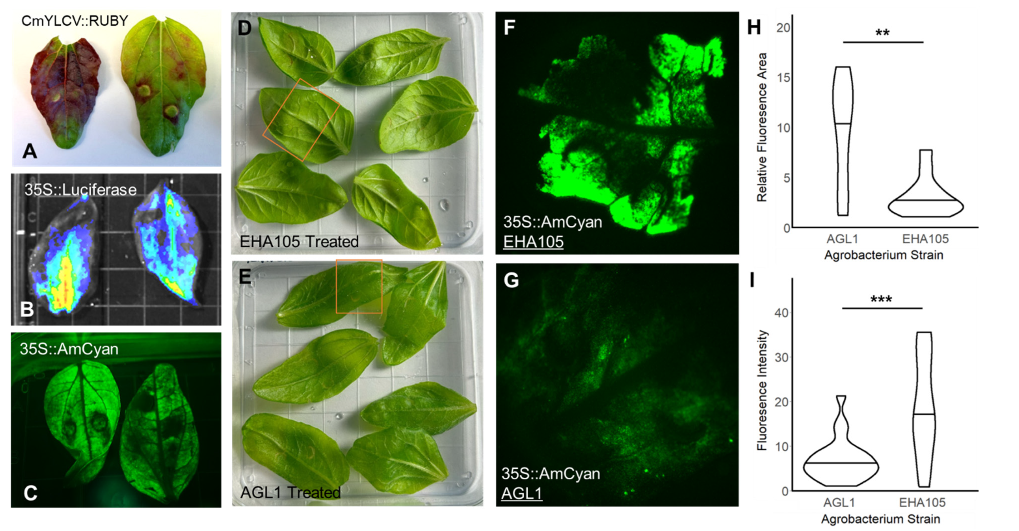 2.3. Comparing T-DNA Transfer Capabilities of Different Agrobacterium Strains with Leaf Infiltrations