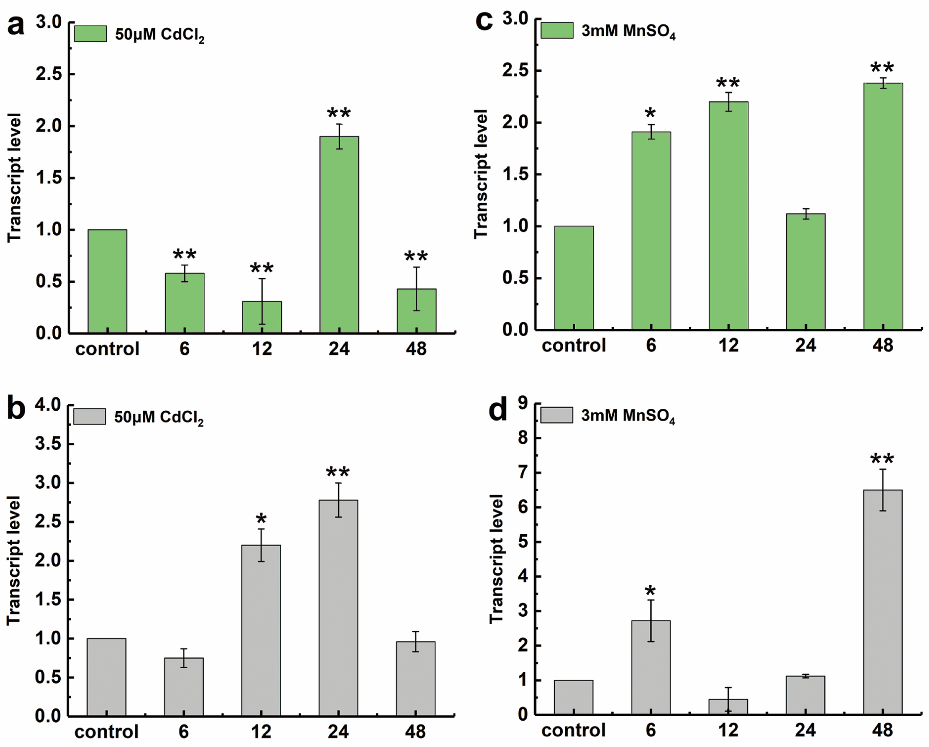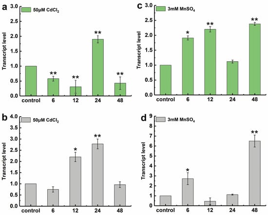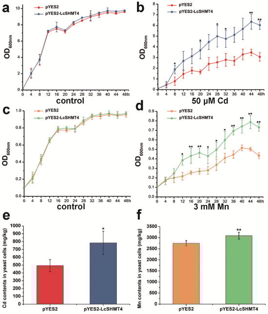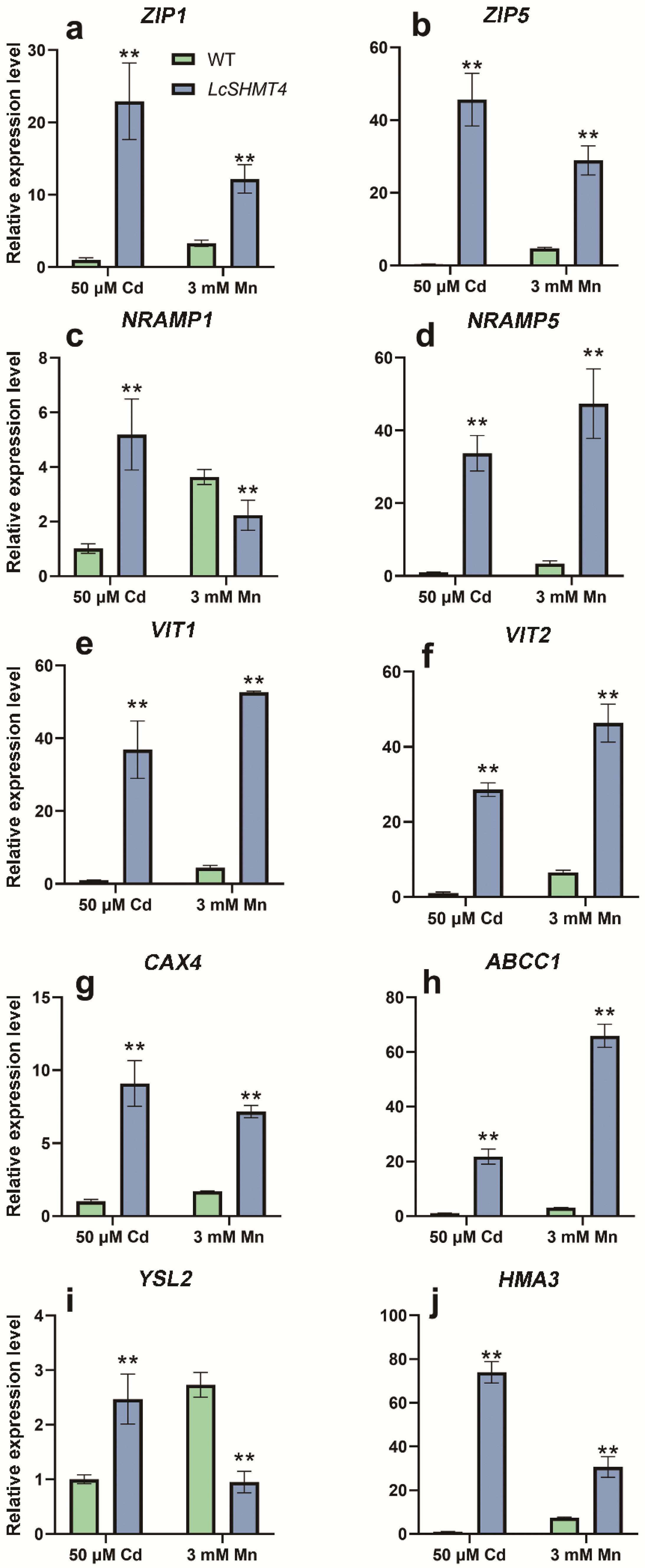 2.3. Expression of LcSHMT4 Under Cd and Mn Stresses