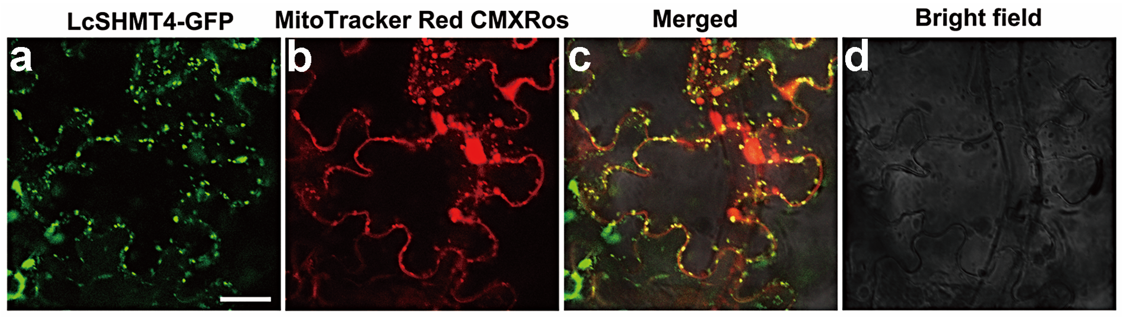 2.4. Localization of LcSHMT4 at the Mitochondria