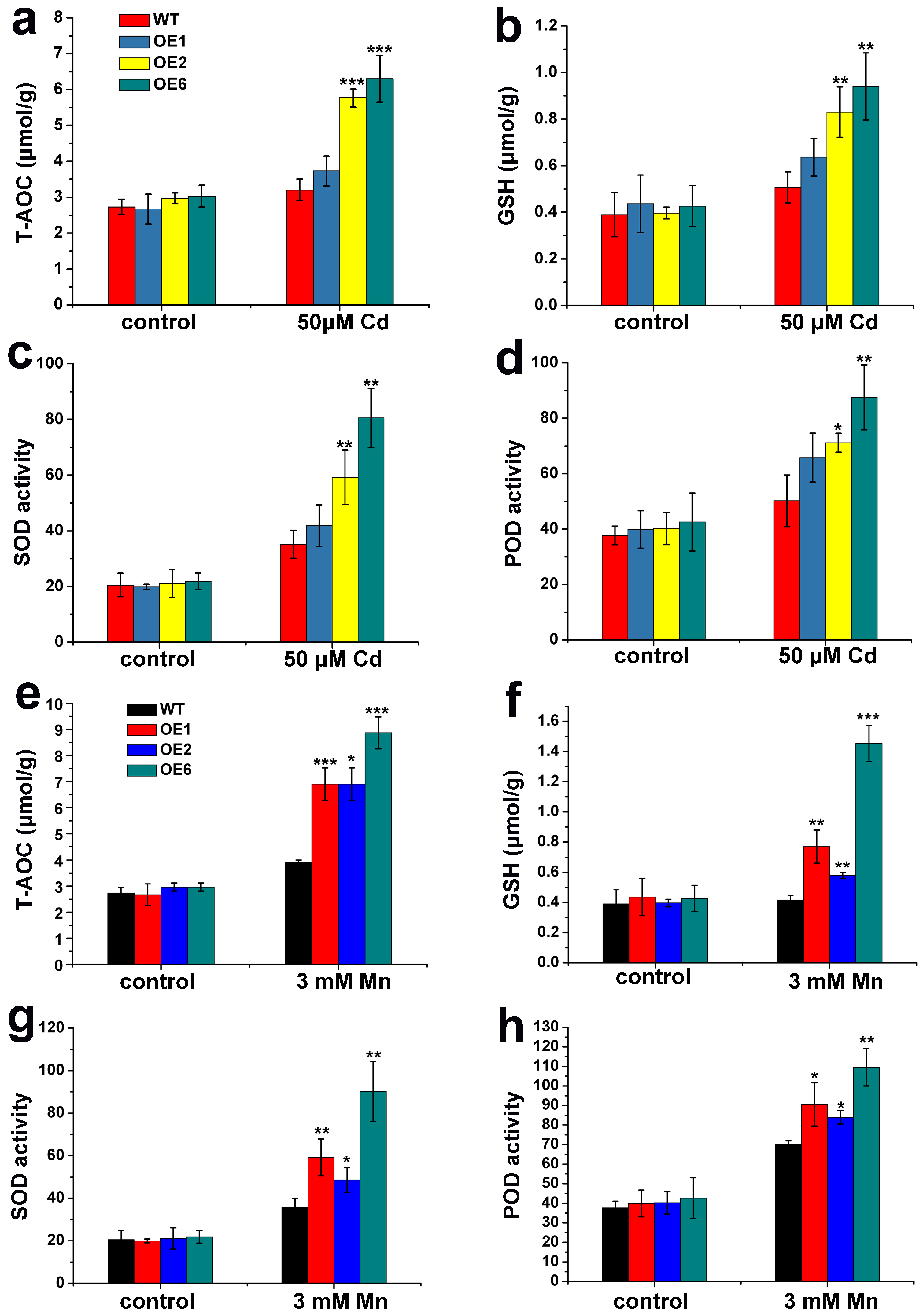 2.5. Cd and Mn Tolerance of Rice Overexpressing LcSHMT4