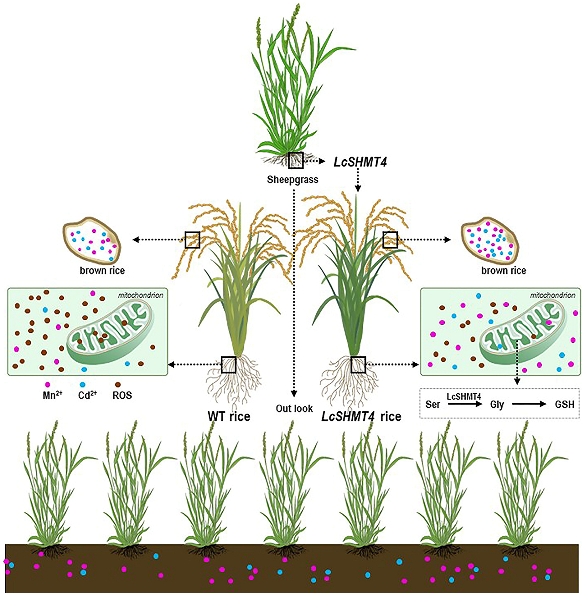 Wang J, Di G, Lin Y, Mu L, Zhuang X, Zhang D, Han W, Chai T, Zhou A, Qiao K. LcSHMT4 from Sheepgrass Improves Tolerance to Cadmium and Manganese and Enhances Cd and Mn Accumulation in Grains. Plants. 2026; 15(1):91. https://doi.org/10.3390/plants15010091