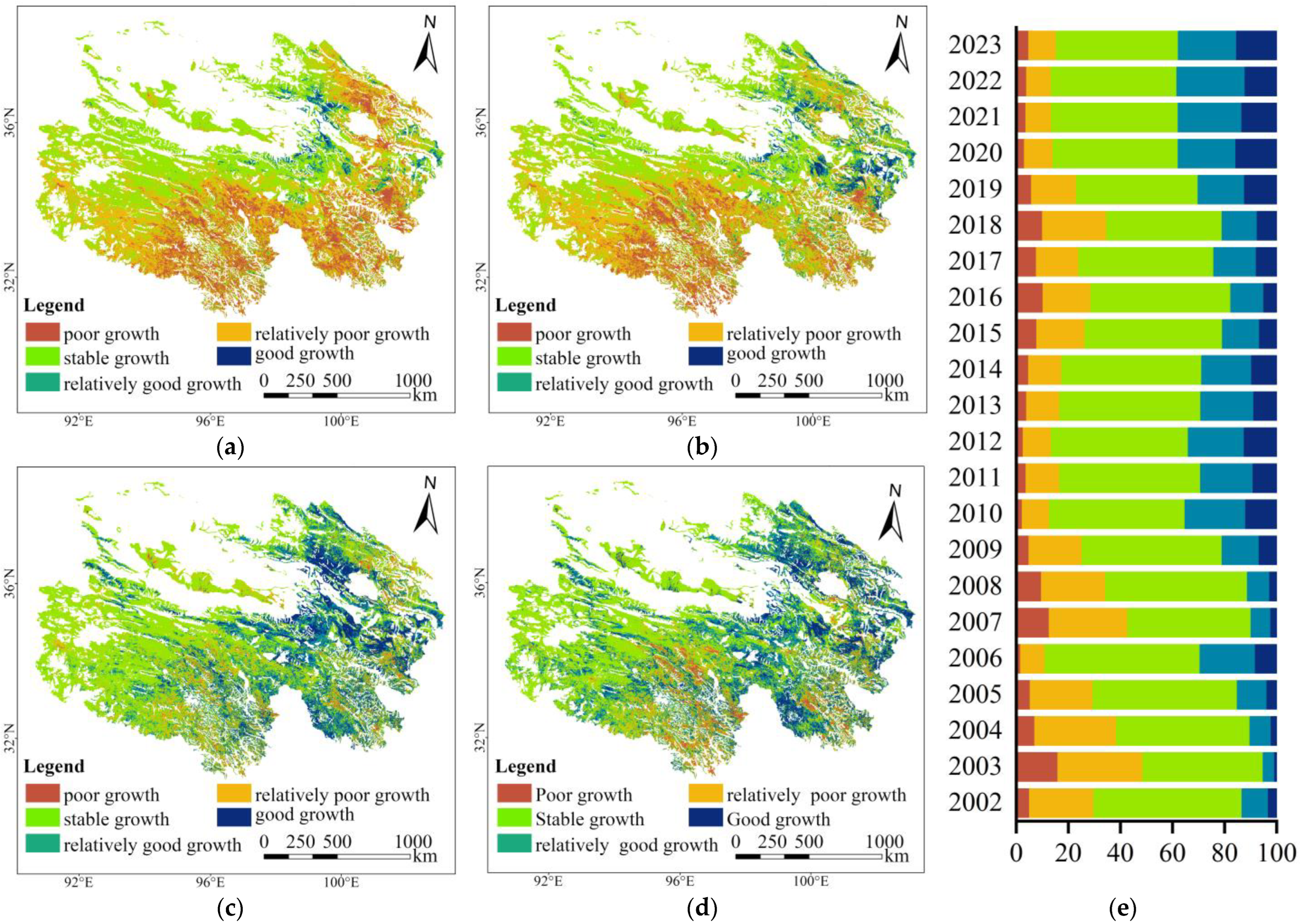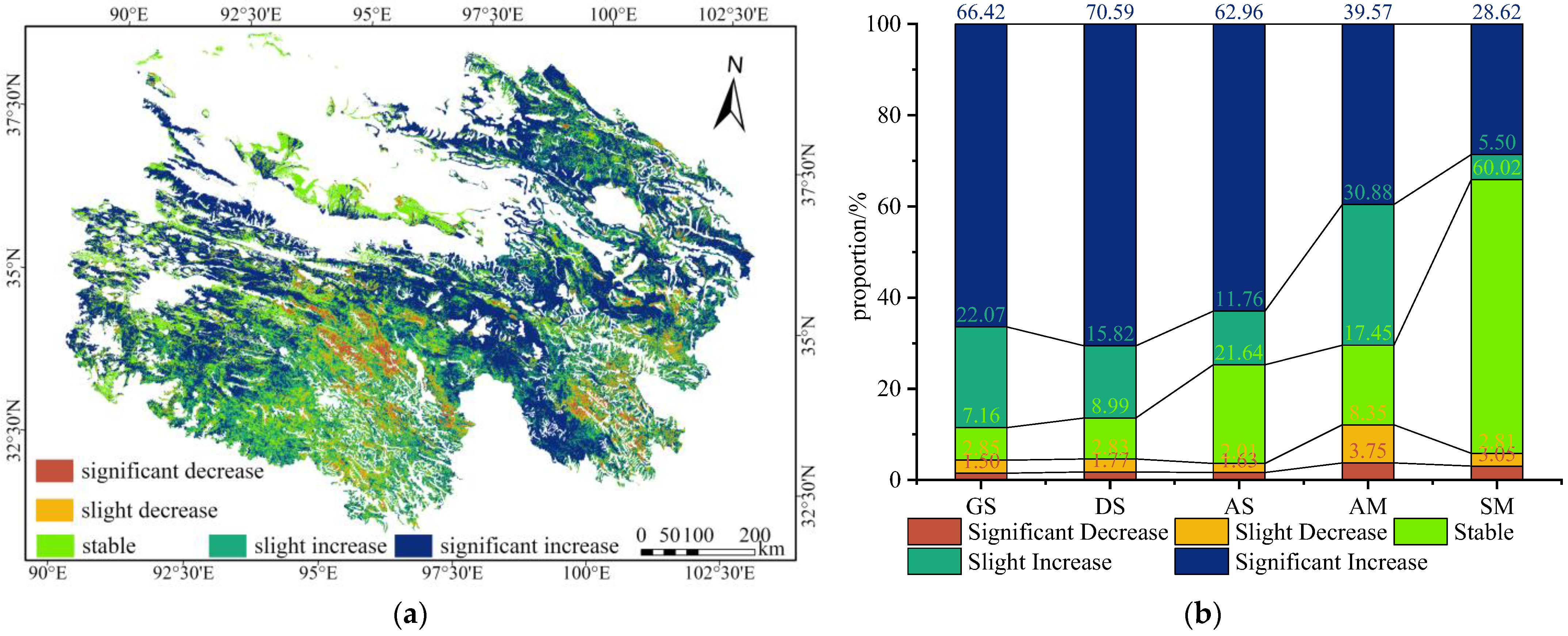 4.2. The Spatiotemporal Variation in the Alpine Grassland Growth