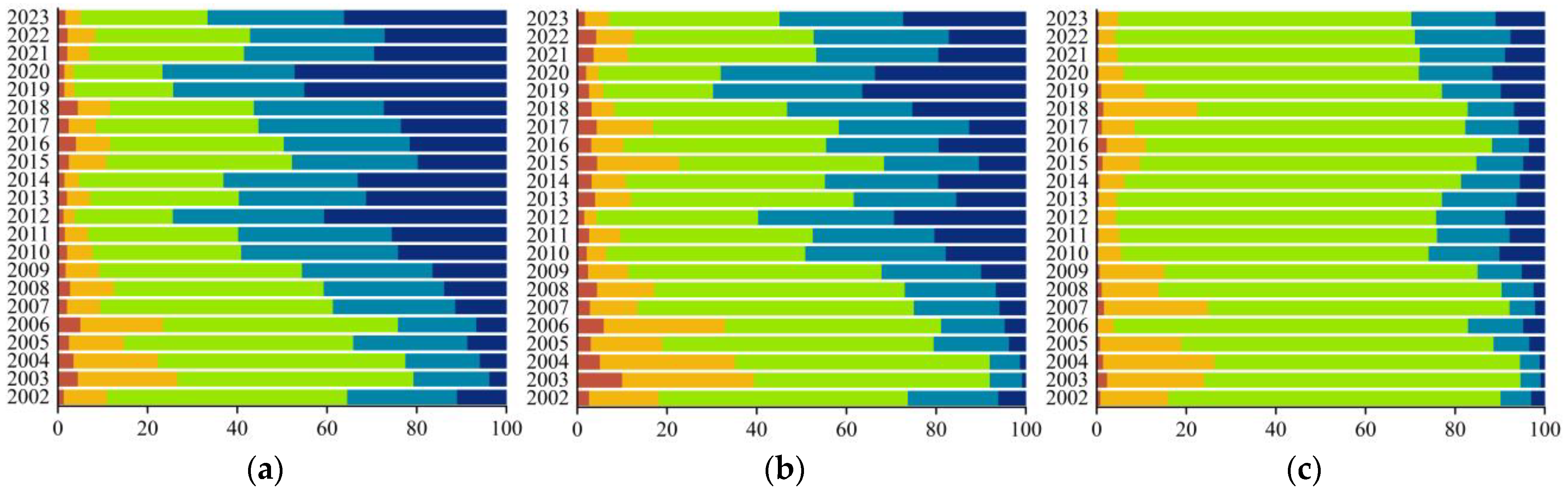 - Zhang, X.; Wang, G.; Xue, B.; A, Y. Changes in vegetation cover and its influencing factors in the Inner Mongolia reach of the Yellow River Basin from 2001 to 2018. Environ. Res. 2022, 215, 114253. [Google Scholar] [CrossRef]