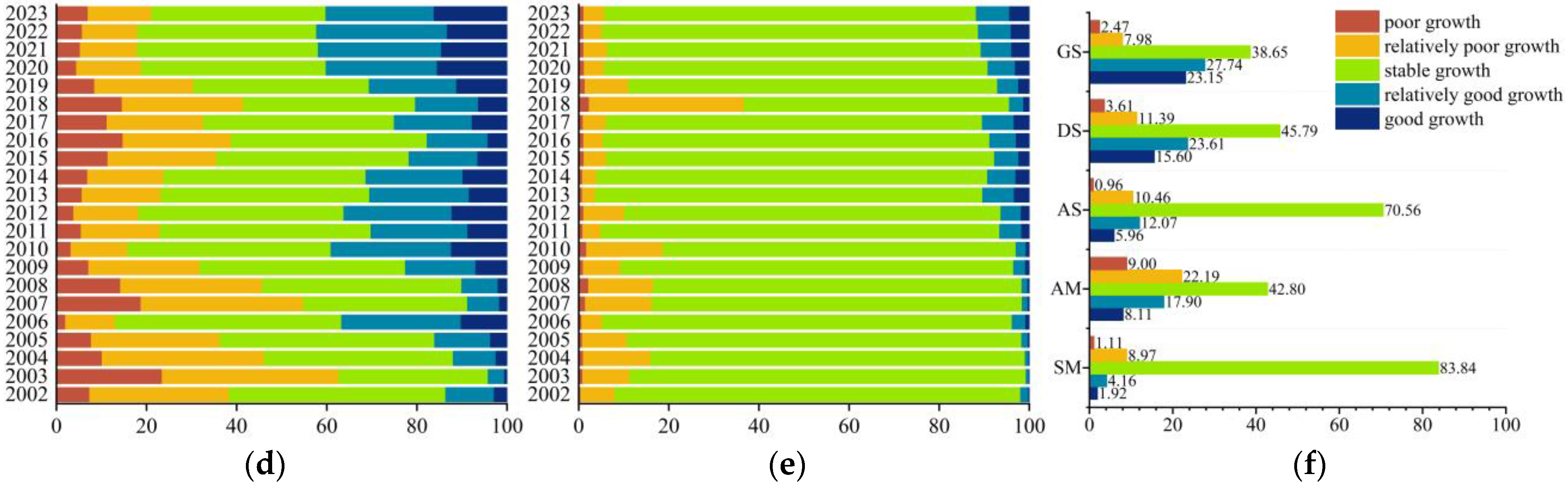 - Feng, X.; Tian, J.; Wu, J.; Wu, G.; Ren, Y.; He, C.; Bao, W.; Yu, T. Exploring the spatio-temporal distribution characteristics and the impacts of climate change and human activities on global grassland based on kNDVI. Environ. Res. 2025, 279, 121884. [Google Scholar] [CrossRef]