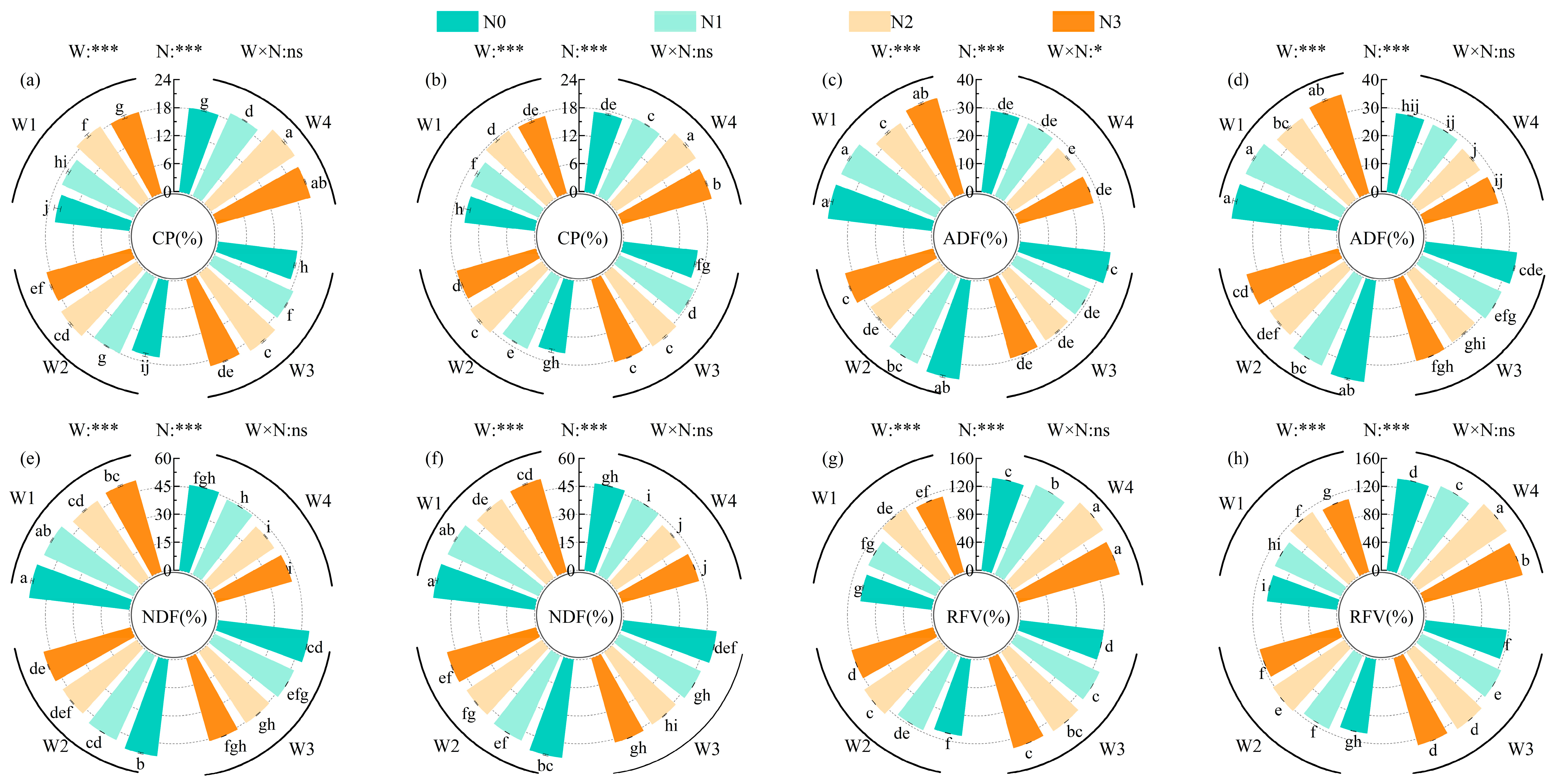 2.3. Responses of Forage Quality Attributes