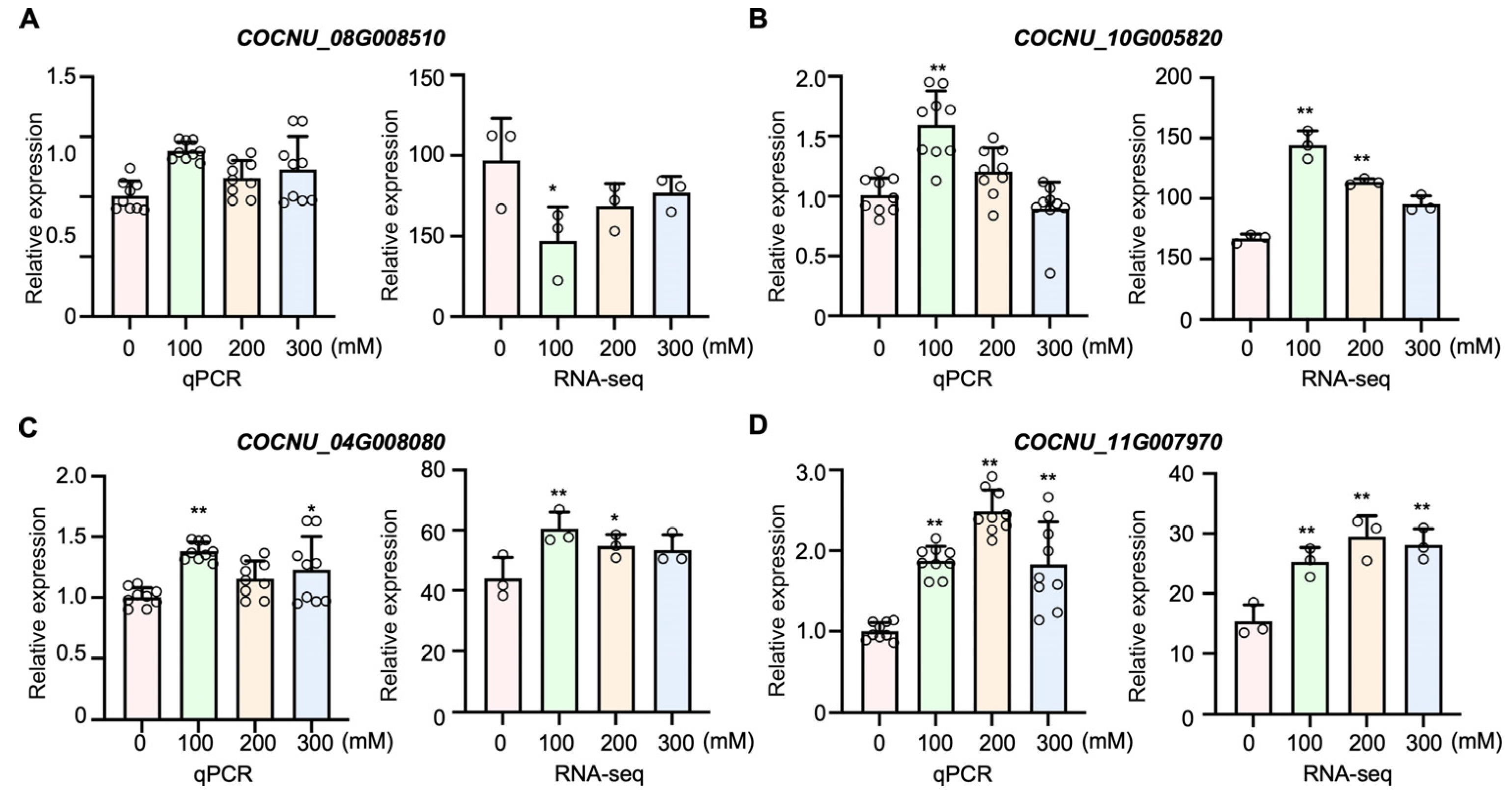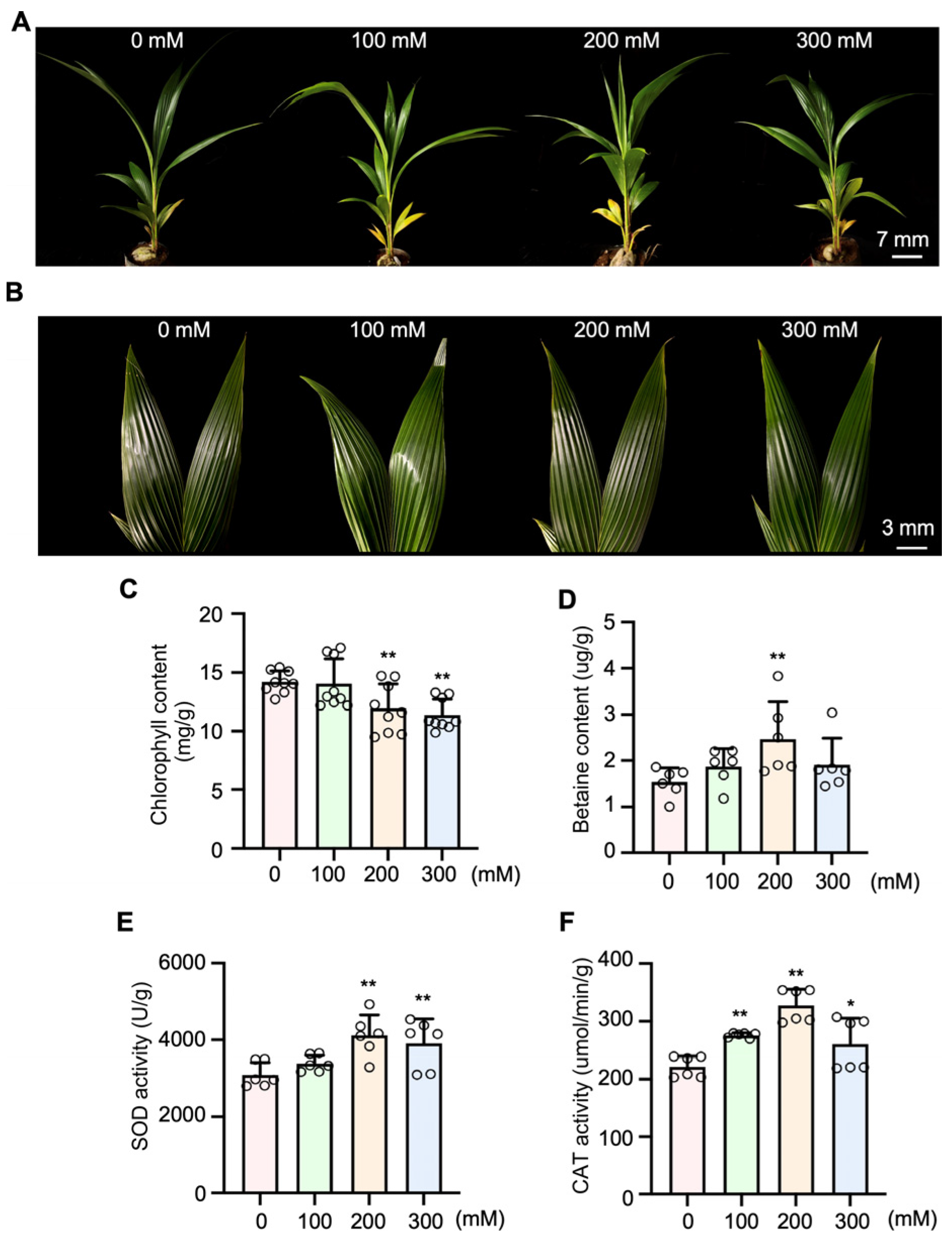2.1. Aromatic Coconut Is a Moderately Salt-Tolerant Plant