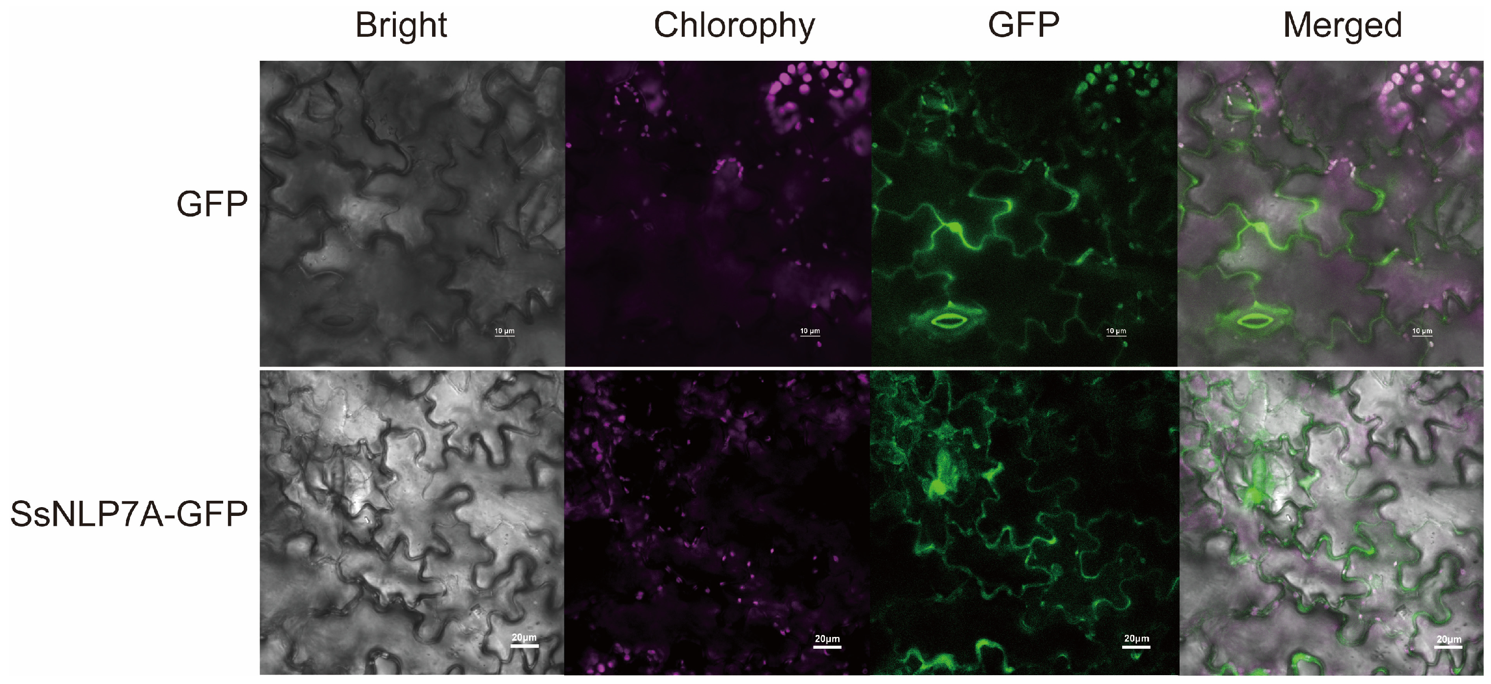 2.3. Subcellular Localization of SsNLP7A Protein in Tobacco