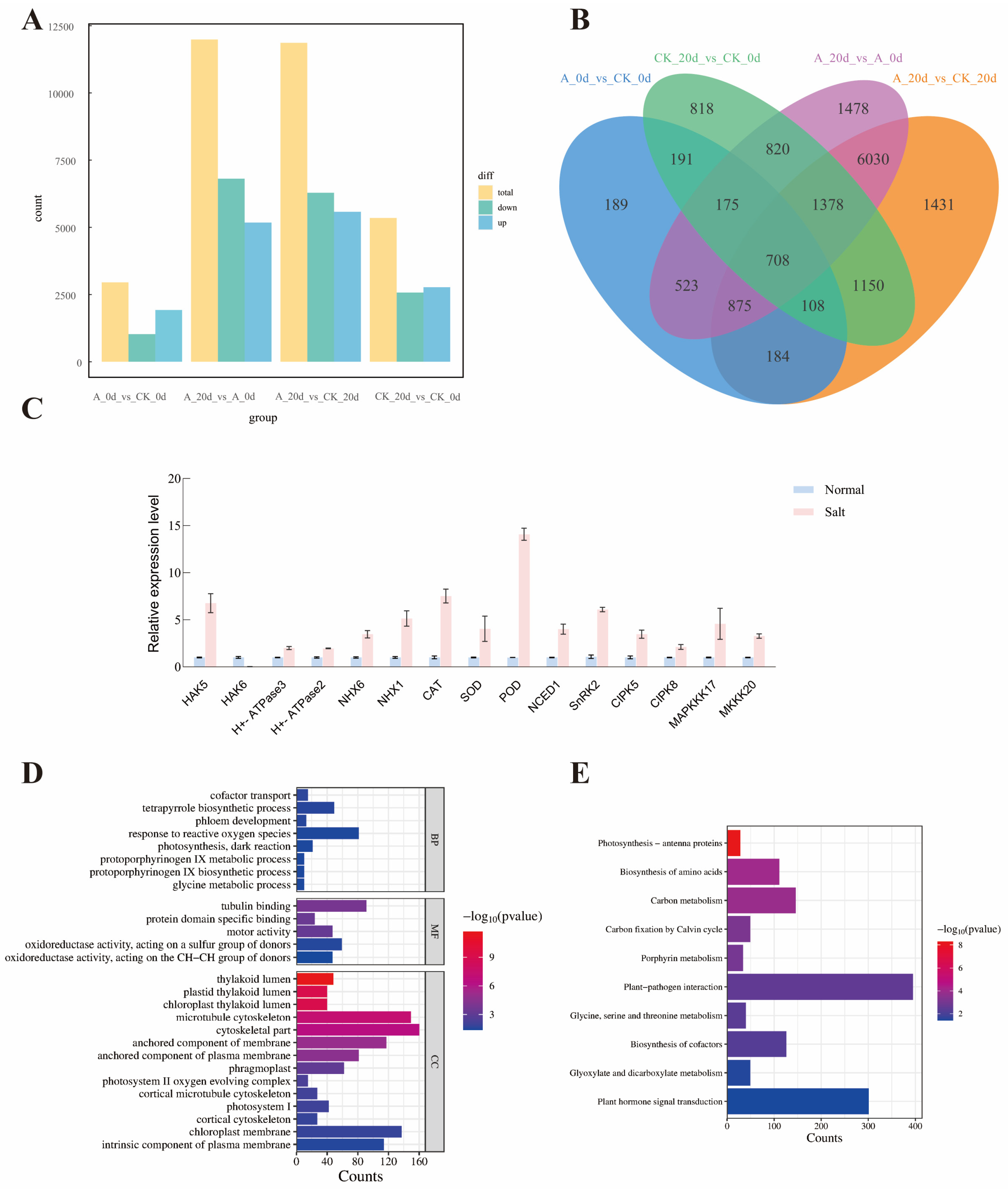 2.9. Analysis of RNA Sequences and Identification of Differentially Expressed Genes in Tomato Under Salt Stress