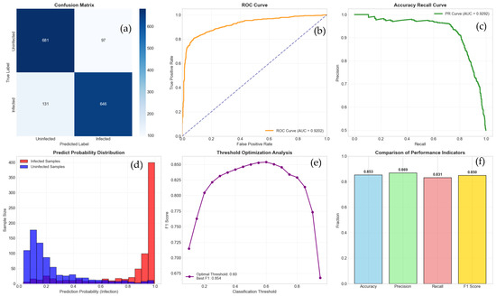 To assess model robustness in small-sample scenarios and its sensitivity to distributional variance, performance was evaluated using multiple quantitative metrics, including accuracy, precision, recall, F1 score, and the AUC-ROC curve.