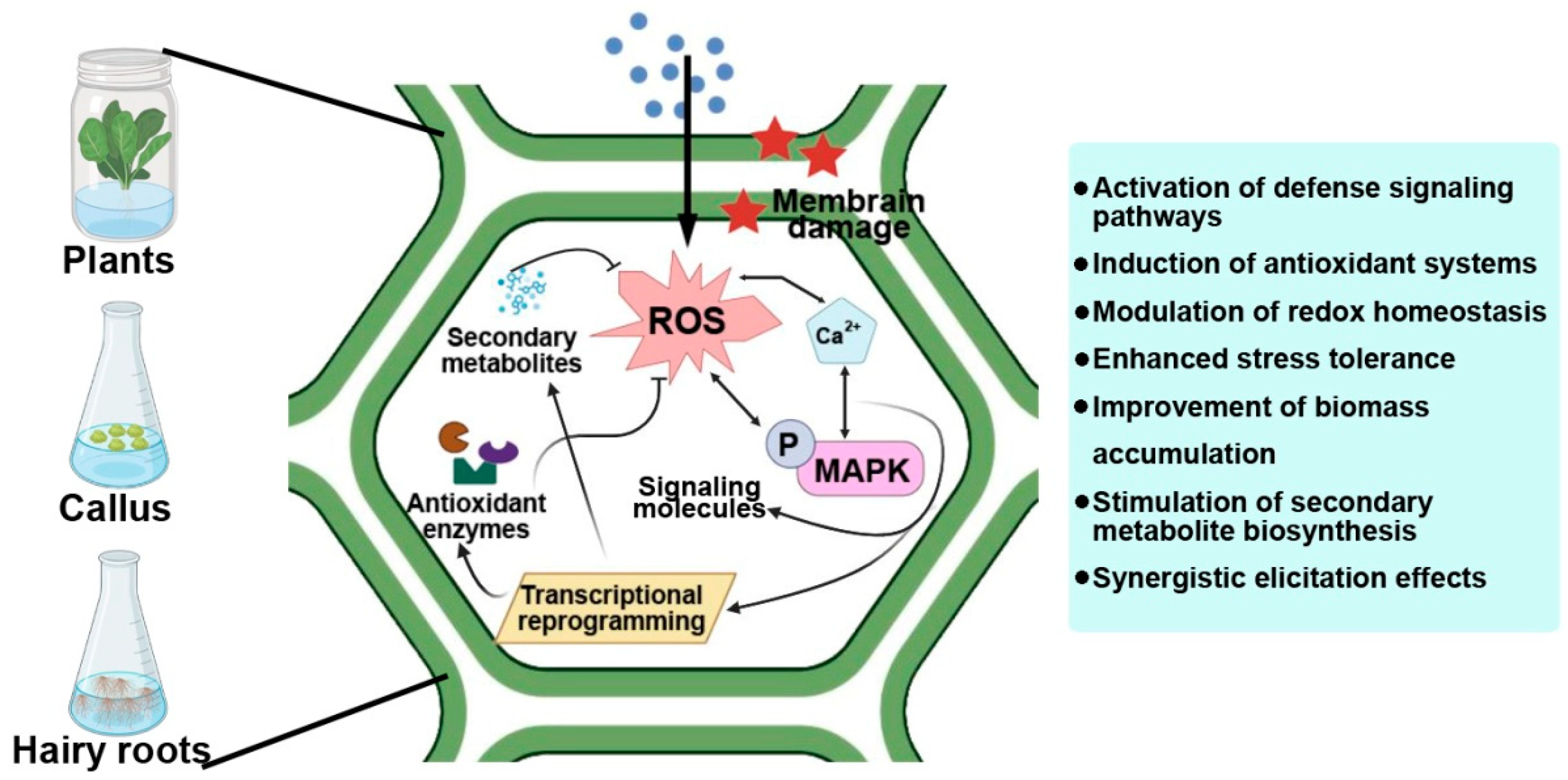 - Inam, M.; Attique, I.; Zahra, M.; Khan, A.K.; Rahim, M.; Hano, C.; Anjum, S. metal oxide nanoparticles and plant secondary metabolism: Unraveling the game-changer nano-elicitors. Plant Cell Tissue Organ Cult. 2023, 155, 327–344. [Google Scholar] [CrossRef]