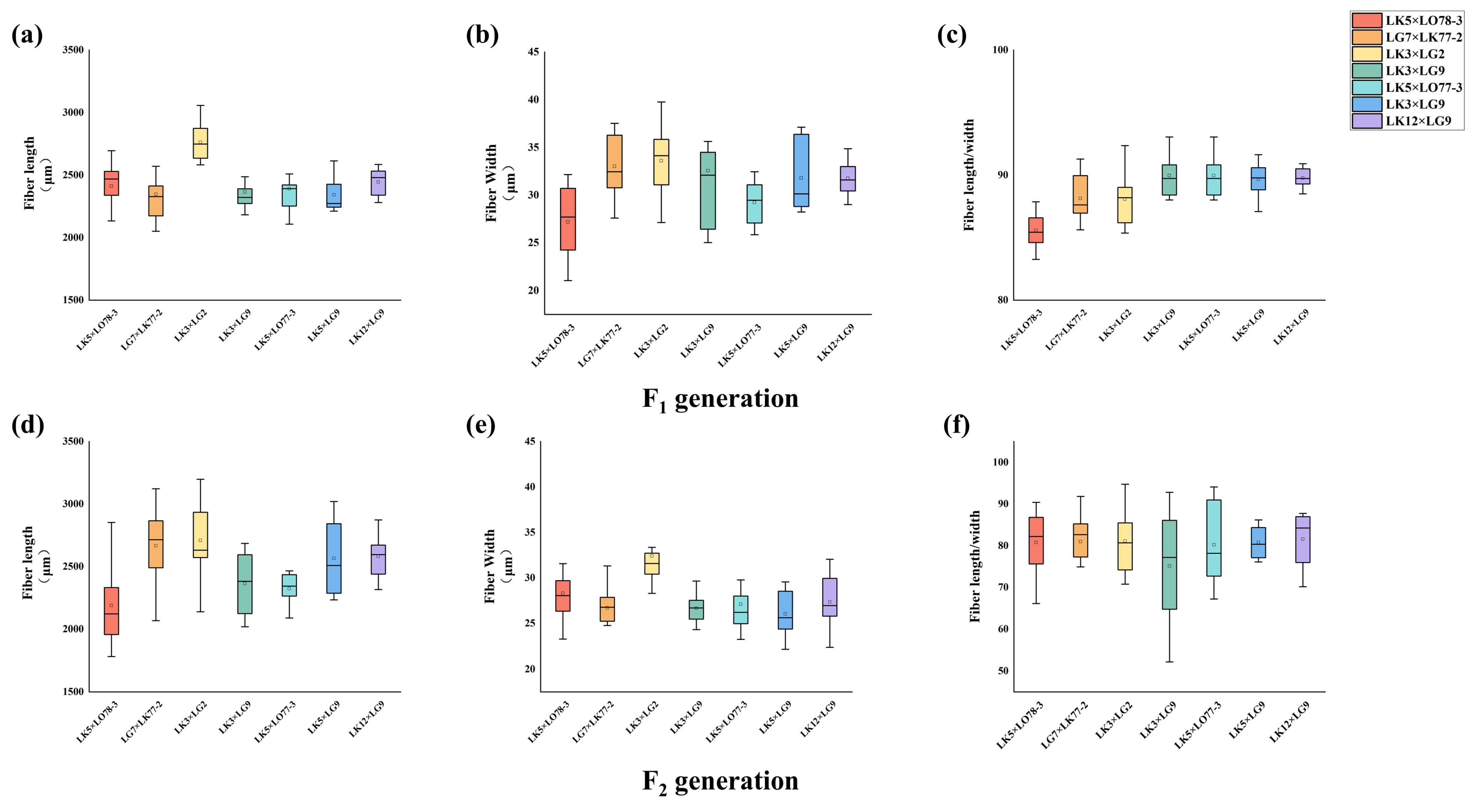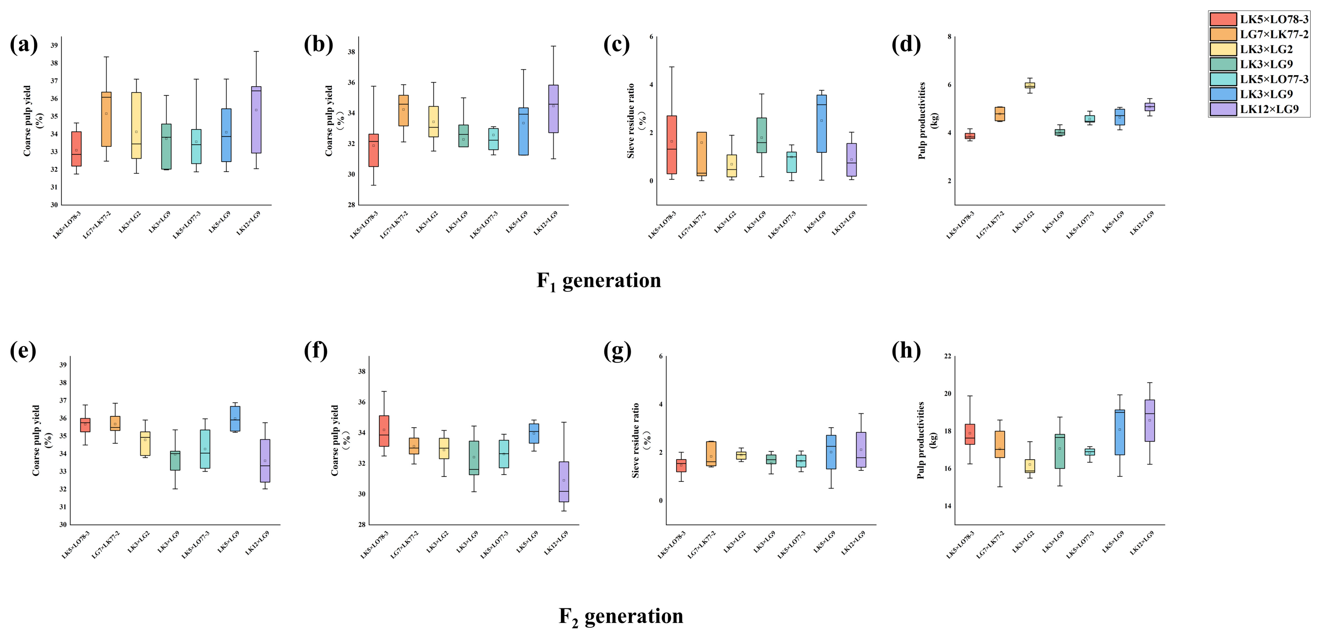 2.3. Comparison of Pulping Performance Traits Between F1 and F2 Generations