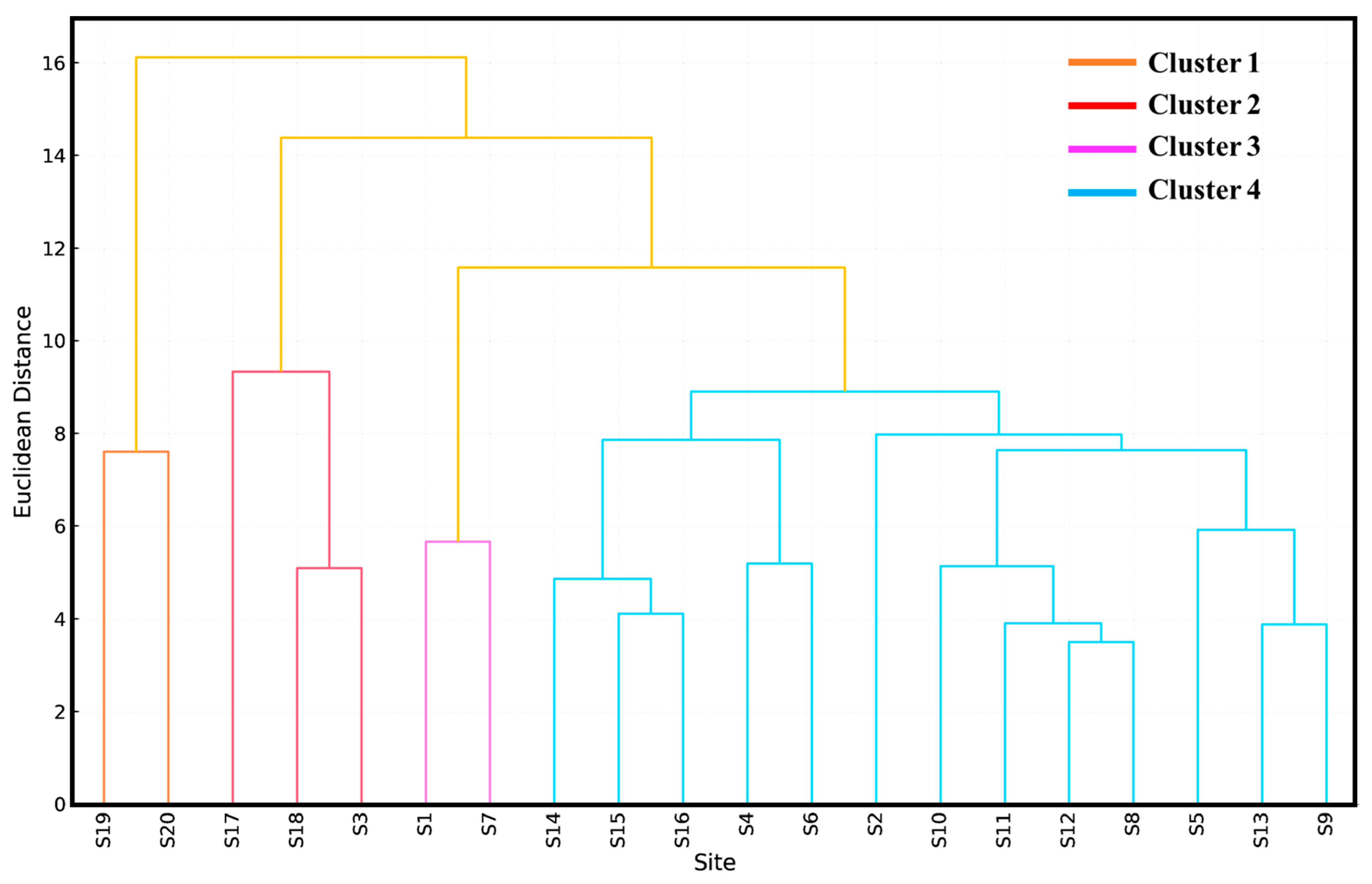 3.3.3. HCA of Orchard Sites Based on Integrated Soil, Leaf, Bioaccumulation, and Photosynthetic Characteristics