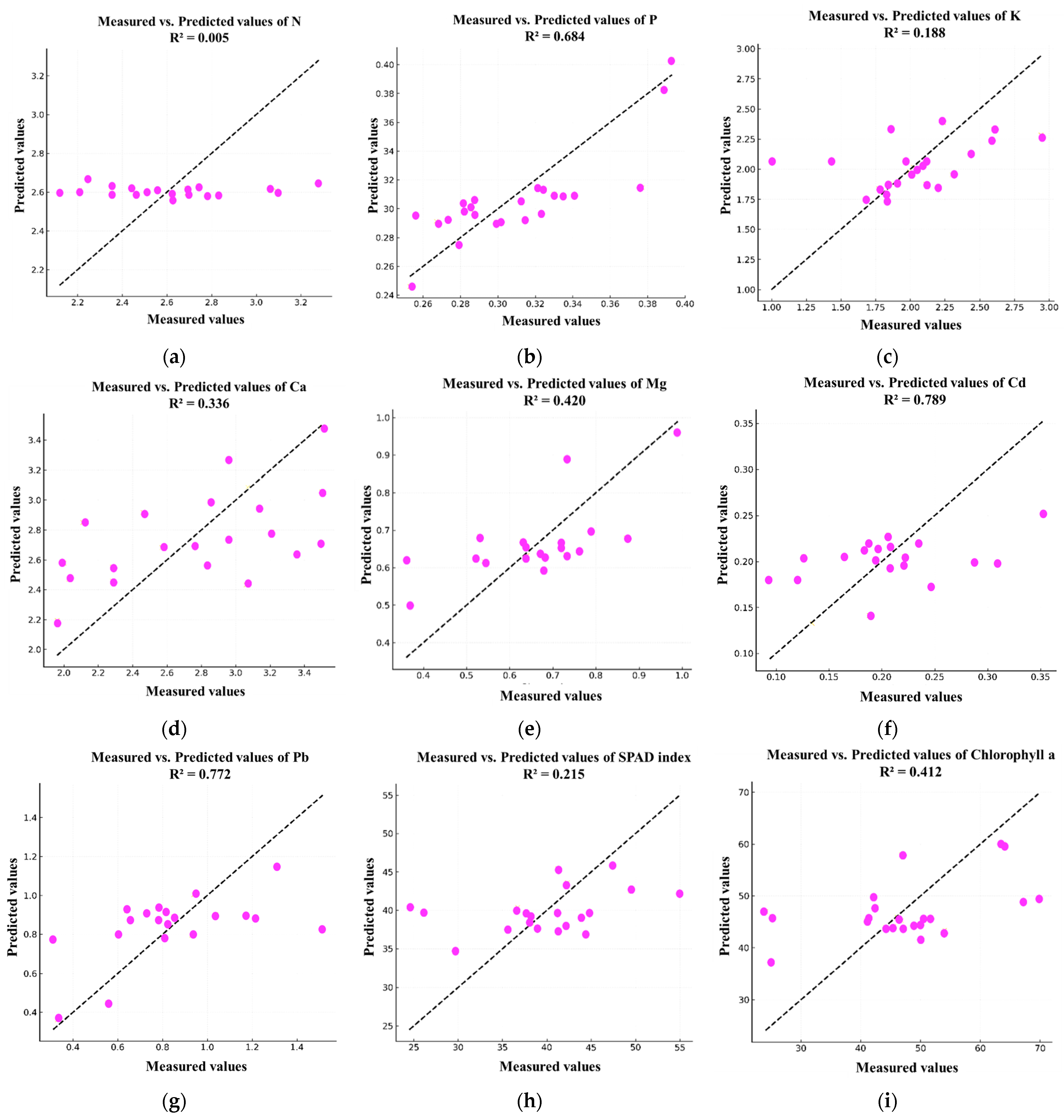 3.5. Predictive Modeling of Leaf Nutrient Status and Photosynthetic Traits Using PLSR