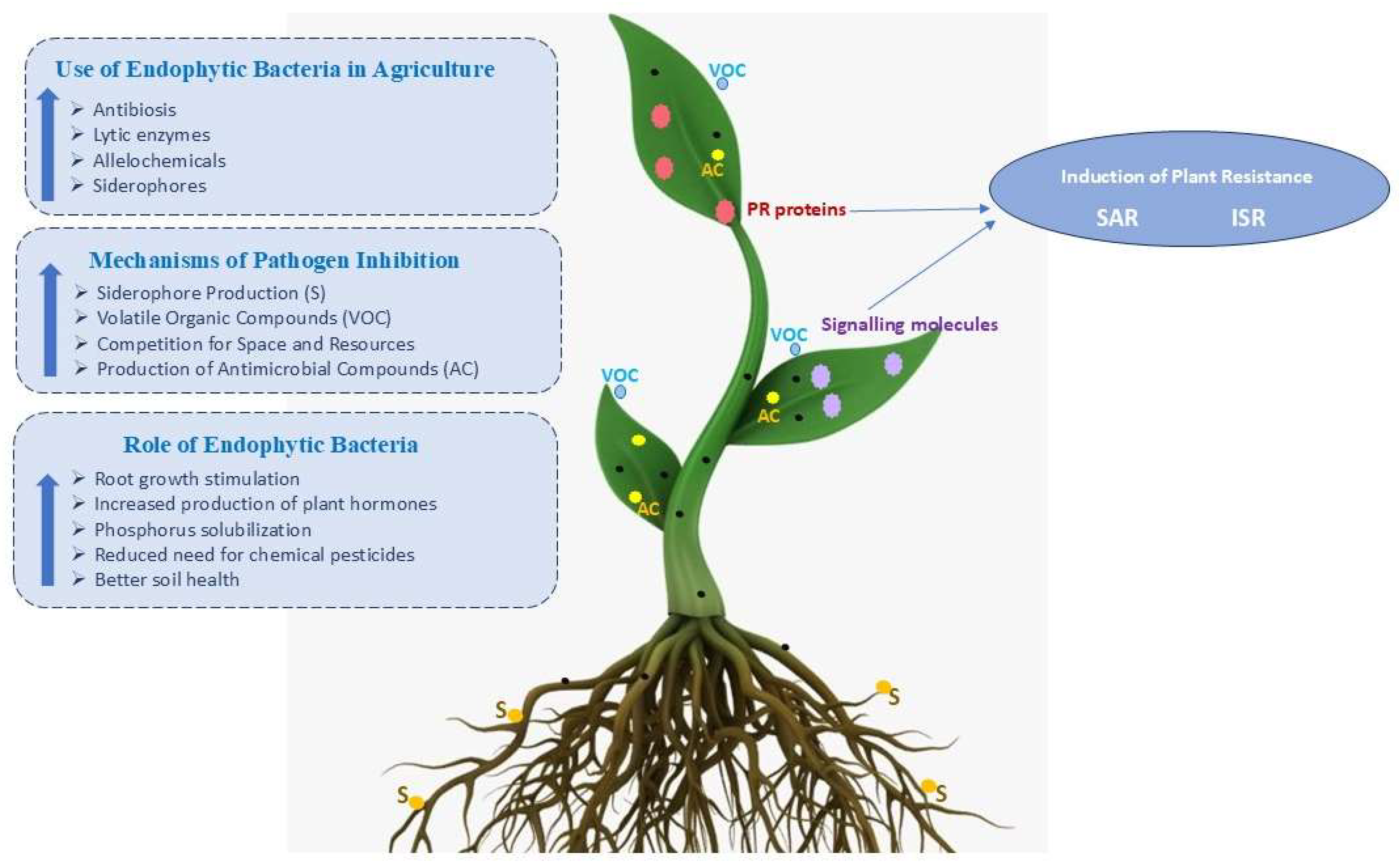 - Chaudhary, P.; Agri, U.; Chaudhary, A.; Kumar, A.; Kumar, G. Endophytes and their potential in biotic stress management and crop production. Front. Microbiol. 2022, 13, 933017. [Google Scholar] [CrossRef]